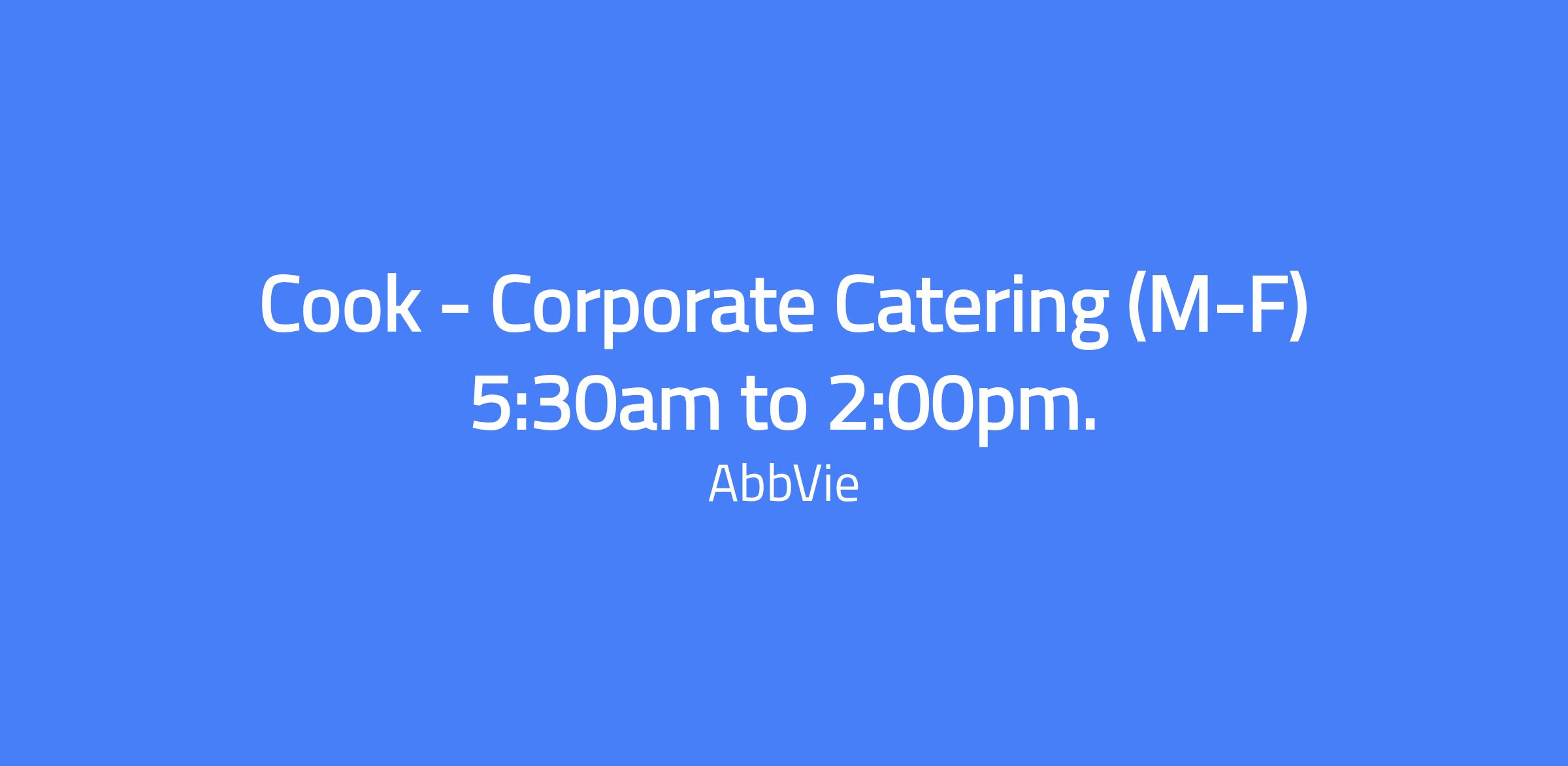 Cook for corporate catering with a Monday–Friday schedule from 5:30am to 2:00pm CST and occasional weekend shifts. Responsible for preparing and coordinating menu items, maintaining food quality, and ensuring timely service for guest meals in a high-volume setting. Collaborates with catering and kitchen staff to deliver excellent guest service and efficient line setup.