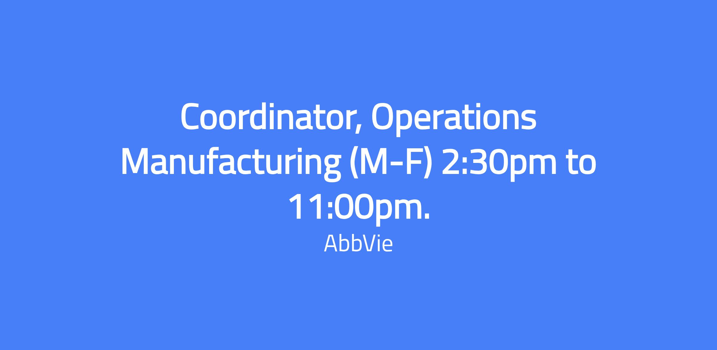 - Required: Must have strong technical knowledge with manufacturing experience in a chemical, biological, pharmaceutical, or similar environment.