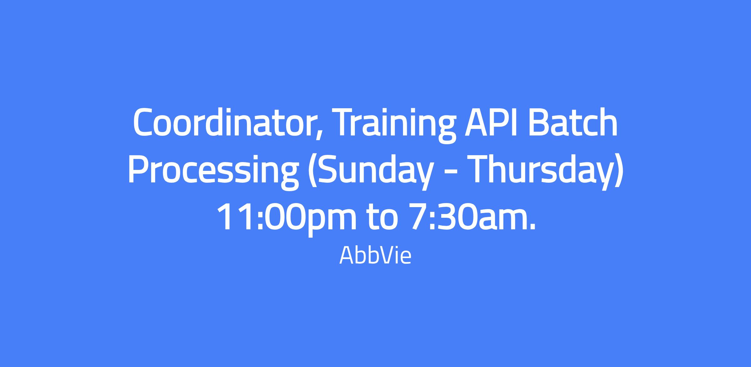 Coordinator, Training API Batch Processing (Sunday - Thursday) 11:00pm to 7:30am. Trains less experienced operators on all jobs and maintains operating conditions within the desired range. Develops and maintains training programs and training management systems. Strong operating knowledge of complex equipment and monitors manufacturing process. Sets an example to follow all safety, quality, environmental, operational and personnel expectations. Identifies opportunities for improvements throughout the operations and leads the implementation of changes both in physical operations and written documents. Strong knowledge of basic computer programs and manufacturing monitoring systems, and inventory management systems and can train less experienced operators to learn them.