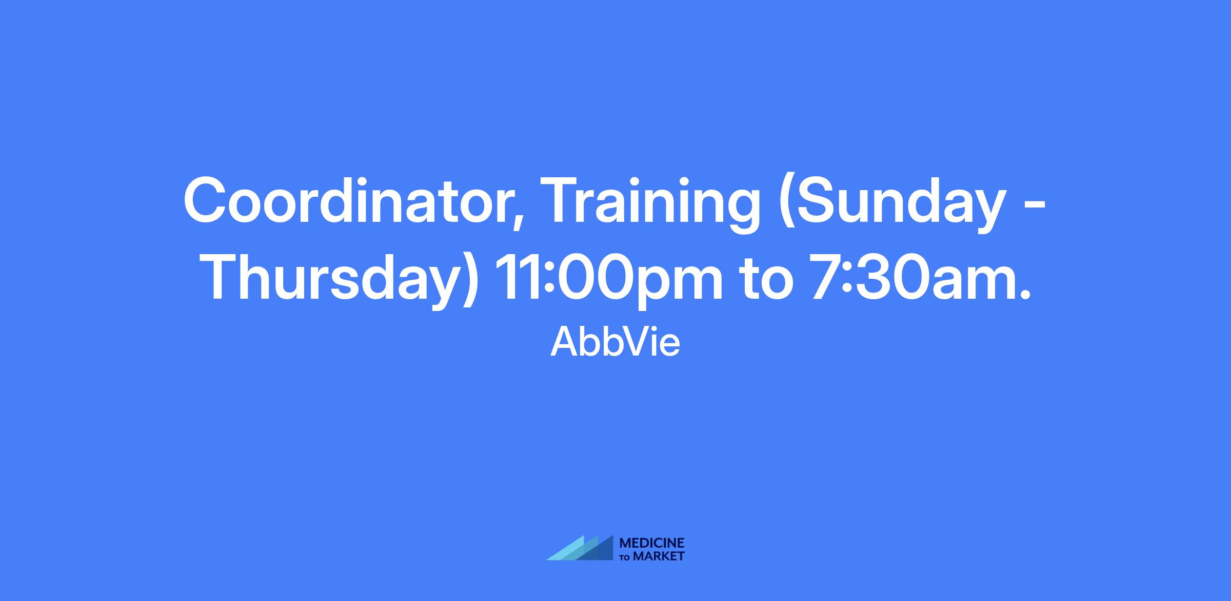 Coordinator, Training (Sunday - Thursday) 11:00pm to 7:30am.