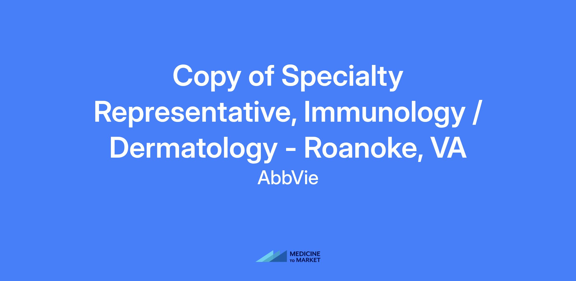Copy of Specialty Representative, Immunology / Dermatology - Roanoke, VA
