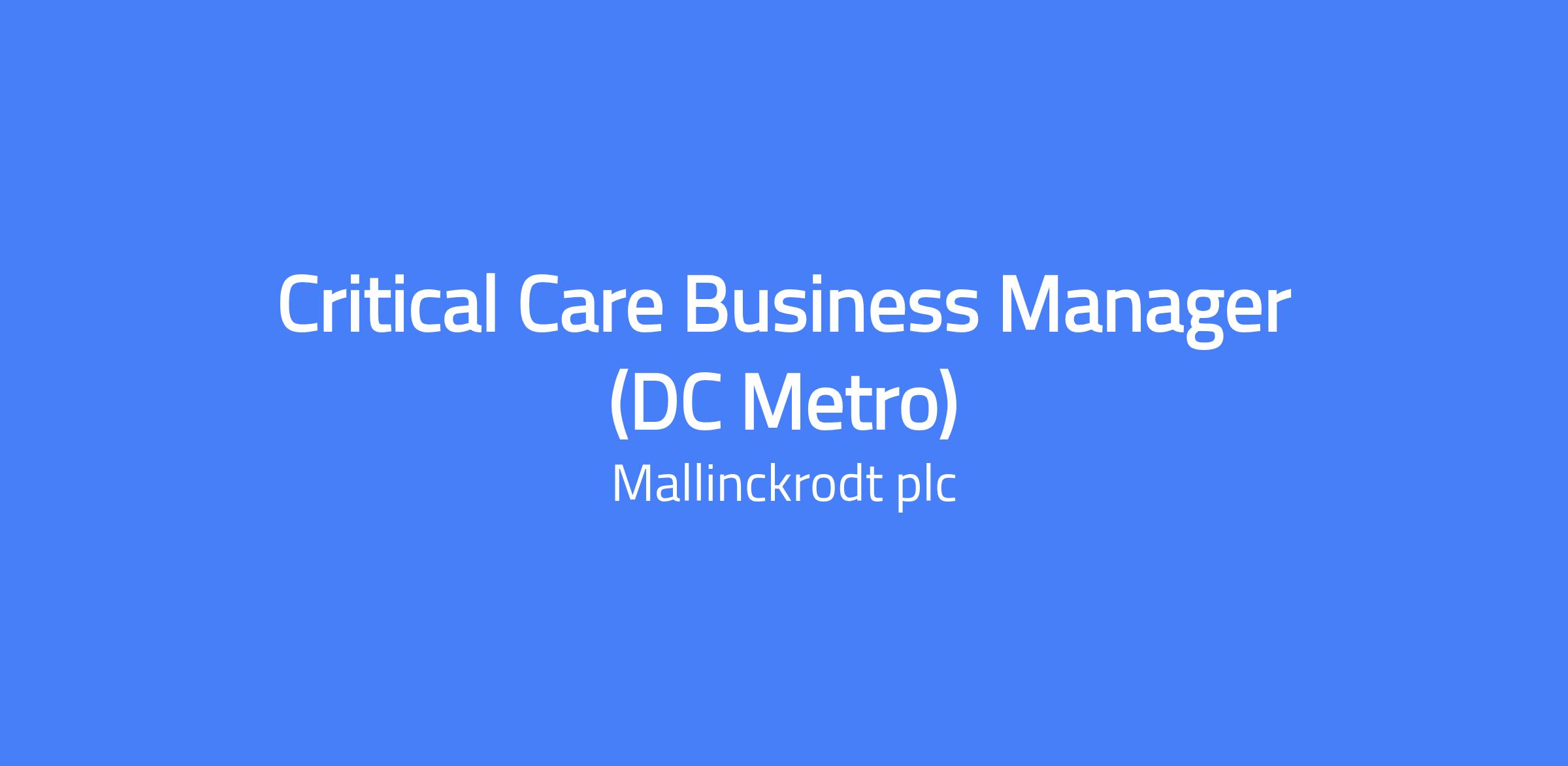 Job Title Critical Care Business Manager (DC Metro) Requisition JR000015655 Critical Care Business Manager (DC Metro) (Open) Location Washington, DC Additional Locations Alexandria, VA, Bethesda, MD Job Description Summary Job Description Hospital based sales position responsible for promoting assigned products and devices within the hospital setting. The Critical Care Business Manager acts as the primary contact for the customer and is responsible for coordinating with all company counterparts that also have responsibilities within the account. In addition to the assigned products, the CCBM is responsible for becoming certified to teach the set up and the utilization of the drug delivery device. Through these responsibilities, the representatives will meet or exceed target objectives (MBO’s). Primary customers include Neonatal HCP’s, Physicians, Mid-level Providers, Respiratory Therapists, Nurses and Hospital Administrators – especially Finance and Supply Chain. Key Responsibilities: Effectively communicates about the product & overcomes objections Understands disease state and therapeutic area Uses clinical data in selling product Understands the market landscape and competing products Analyzes territory and account data, uses judgment and experience to identify business opportunities Prioritizes sales activities and continually evaluates targets to meet goals and track sales impact Develops KOLs and implements programs consistent with product strategy to drive sales results Develops and maintains relationships with internal colleagues and external HCPs/Customers Ensures compliance with all applicable laws, policies and procedures in conducting business Meets specific expectations on speaker events and other available resources Fully Competent to train on the device to all levels of users Qualifications: Education / Experience / Skills: B.A. or B.S. degree in relevant field, and 2 plus years recent hospital sales experience or 5 plus years Specialty sales In lieu of a Bachelor’s degree, will consider either an Associate’s Degree and 5+ years of successful, proven pharmaceutical or industry equivalent experience within hospital / Institutions. Current experience within the territory and customer knowledge highly preferred. Strong technical and clinical presentation and selling skills Excellent verbal and written communication and interpersonal skills Proven track record of sales success and strong business acumen Excellent planning and organizational skills Strong collaboration and teamwork skills Valid driver’s license Required to pass all product training testing Overnight travel Excellent computer skills Preferred: B.A. or B.S. degree in relevant field, M.B.A. a plus Academic and community institutional selling experience Institutional contracting process experience Institutional contracting process experience Respiratory Therapy experience in Institution(s) Ventilator sales/field experience Competencies: Selling Skills Clinical Acumen Business Acumen Communication and Teamwork Resource Utilization Organizational Relationship/Scope: The role is a field-based customer facing position reporting into the Commercial Sales Organization Working Conditions: Local travel; some overnight required, may vary depending on the region Keenova offers employees a Total Rewards package which includes competitive pay and benefits. To learn more about our Total Rewards benefits please visit: Keenova Careers | Serve and Grow with Purpose | Keenova The expected base pay range for this position is $146K - $168K. Please note that base pay offered may vary depending on factors including job-related knowledge, skills, and experience. This position is eligible for a bonus in accordance with the terms of the applicable program. Bonuses are awarded at the Company’s discretion. Disclaimer: The above statements are intended to describe the general nature and level of work performed by employees assigned to this job. They are not intended to be an exhaustive list of all duties, responsibilities, and qualifications. Management reserves the right to change or modify such duties as required. #LI-GN1 and #LI-Remote At Keenova, we believe that no one should be alone in their pursuit of better health. This purpose drives us as we pair quality therapeutics with human support—showing up in big moments and small to help patients find comfort and confidence. We bring deep expertise and resolve to every therapeutic area we serve, including immunology, urology, men’s health, orthopedics, critical care, and pediatric endocrinology. We work with patients, care partners, and physicians to help them navigate healthcare system complexity and access therapies that make a meaningful difference. We are Keenova—keen to solve, keen to serve. Learn more at www.keenova.com. At Keenova, we know that we contribute to something that matters because we make quality products that impact patient lives. Our dynamic work environment provides unique experiences for employees to grow and develop. Invest in your own career with Keenova and let’s do something dynamic together. Keenova provides equal employment opportunities to applicants and employees without regard to race; color; gender; gender identity; sexual orientation; religions practices and observances; national origin; pregnancy, childbirth, or related medical conditions; protected veteran status; disability; or any other category protected by law. Additional information on Keenova’s hiring practices may be found by clicking