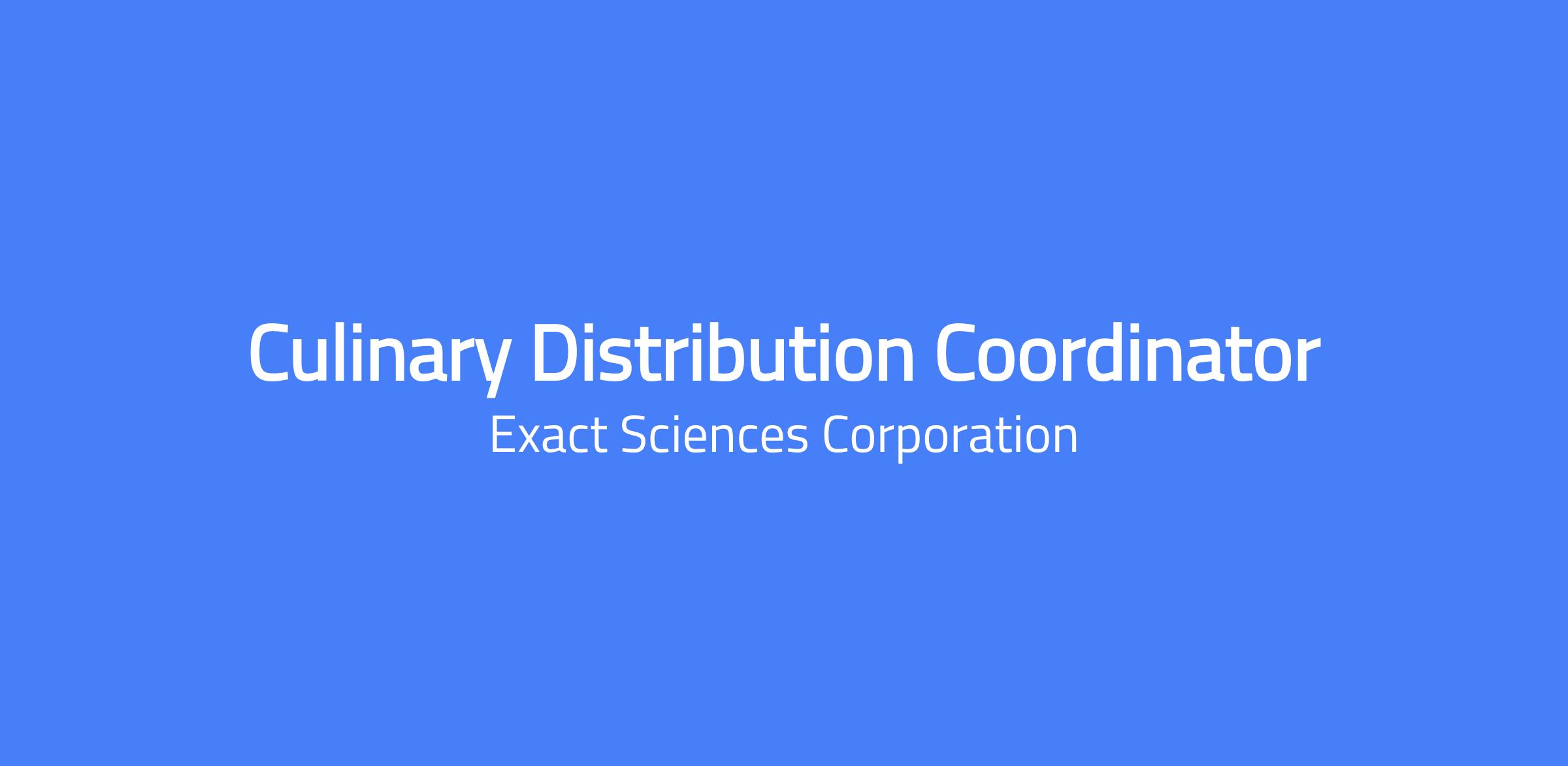 Help us change lives At Exact Sciences, weâre helping change how the world prevents, detects and guides treatment for cancer. We give patients and clinicians the clarity needed to make confident decisions when they matter most. Join our team to find a purpose-driven career, an inclusive culture, and robust benefits to support your life while youâre working to help others. Position Overview The Culinary Distribution Coordinator II supports the food service team by working closely with the operations manager, stakeholders, and vendors to ensure that department operational needs are met through excellent coordination and communication. This role will have primary support duties for delivery and stocking of local micro-markets. Essential Duties Include, but are not limited to, the following: Delivery and stocking of local micro-markets while following FIFO (First In, First Out) and good food safety standards. Transport items daily between Madison locations while driving a delivery van/truck. Load a delivery van/truck by properly placing and securing items. Tracking and documenting inventory and ensuring par levels are followed. Documenting and reporting engagement of specific food items to ensure our program is meeting customer needs. Responsible for ordering food to maintain par levels at all locations Adaptable to rapid changes in priorities, strong sense of urgency, and able to identify ways to work together to achieve results needed for all requests. Maintain shared filing system to track critical information. Promote teamwork and quality service through daily communication. Ability to develop and maintain positive working relationships with others and support teams to reach common goals. Ability to frequently and accurately communicate with employees, customers, and vendors in person, via the telephone or by email. Ability to track detail and coordinate multiple tasks both owned individually and by others. Demonstrated success with oral and written communications, results orientation, facilitation, and teamwork skills. Manages issues and action items collaborating directly with team members to ensure completion. Ability to consistently perform well during times of increased workload. Ability to quickly analyze a situation, come up with solutions, and implement them. Motivated self-starter and creative problem-solver. Proactive, approachable, solution focused. Excellent oral and written communication and interpersonal skills. Excellent internal and external facing customer service skills. Excellent attention to detail and organizational skills. Adaptable, open to change, and able to work in ambiguous situations and respond to new information and unexpected circumstances. Uphold company mission and values through accountability, innovation, integrity, quality, and teamwork. Support and comply with the companyâs Quality Management System policies and procedures. Maintain regular and reliable attendance. Ability to act with an inclusion mindset and model these behaviors for the organization. Ability to work designated schedule. Ability to work nights and/or weekends, as needed. Ability to work overtime, as needed. Ability to lift up to 40 pounds for approximately 20% of a typical working day. Ability to work seated for approximately 50% of a typical working day. Ability to work standing for approximately 50% of a typical working day. Ability to work on a mobile device, tablet, or in front of a computer screen and/or perform typing for approximately 20% of a typical working day. Ability to travel 5% of working time away from work location, may include overnight/weekend travel. Ability to drive a vehicle between Exact Sciences locations as business needs require. Minimum Qualifications Associates Degree in related field as outlined in the essential duties; or High School Diploma or General Education Degree (GED) and 2 years of relevant experience in lieu of Associates Degree. Possession of a valid driver's license; no suspended, revoked, surrendered, invalid, etc. allowed. No more than two moving violations, events, or accidents within the last 36 months. No alcohol or drug event in which a vehicle was driven by the candidate or employee, including but not limited to Blood Alcohol Content (BAC) failure, refusal to submit to alcohol or drug test, alcohol related suspension, etc. in the last 36 months. No other results from the Motor Vehicle Report (MVR) check that exposes Exact Sciences to what Exact Sciences deems to be an unacceptable level of liability. Proficient in Microsoft Office programs, such as Word, Outlook, Excel, and PowerPoint. Authorization to work in the United States without sponsorship. Demonstrated ability to perform the Essential Duties of the position with or without accommodation. #LI-JB1 Salary Range: $38,000.00 - $65,000.00 The annual base salary shown is for this position located in US - WI - Madison on a full-time basis. In addition, this position is bonus eligible. Exact Sciences is proud to offer an employee experience that includes paid time off (including days for vacation, holidays, volunteering, and personal time), paid leave for parents and caregivers, a retirement savings plan, wellness support, and health benefits including medical, prescription drug, dental, and vision coverage. Learn more about our benefits. Our success relies on the experiences and perspectives of a diverse team, and Exact Sciences fosters a culture where all employees can develop personally and professionally with a sense of respect and belonging. If you require an accommodation, please contact us here. Not ready to apply? Join our Talent Community to stay updated on the latest news and opportunities at Exact Sciences. We are an equal employment opportunity employer. All qualified applicants will receive consideration for employment without regard to disability, protected veteran status, and any other status protected by applicable local, state, or federal law. To view the Right to Wor