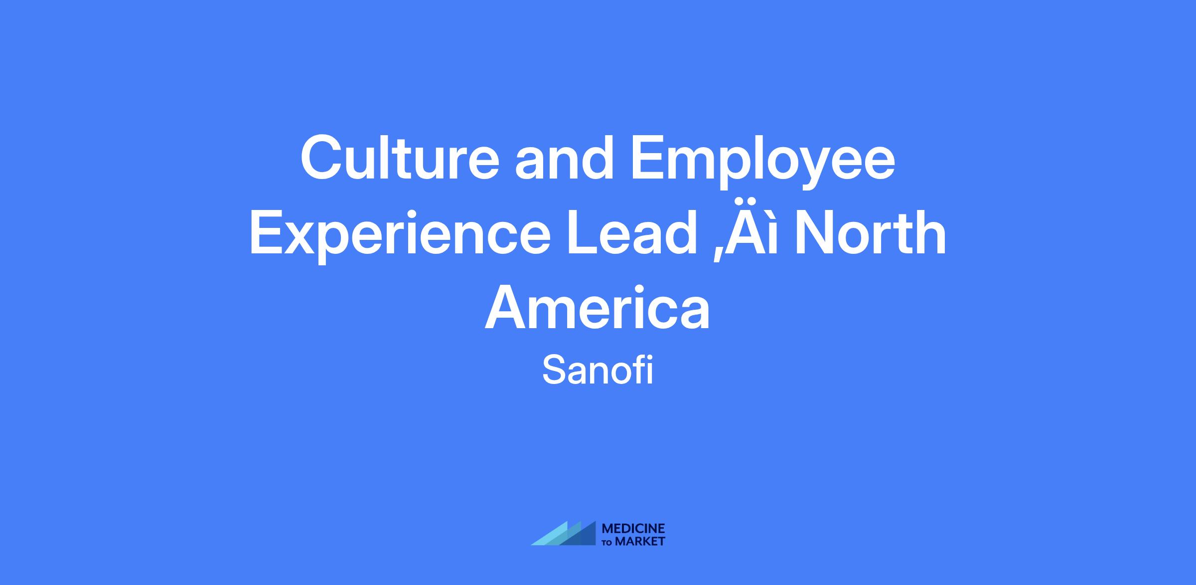 Culture and Employee Experience Lead – North America. Lead Sanofi's culture and employee experience strategy across North America, driving transformational initiatives that foster an engaging, inclusive, and high-performing workplace environment. Shape and execute programs that bring to life Sanofi's values and support the mission to improve people's lives. Influence talent attraction, retention, and engagement while building a culture that drives business performance and innovation.