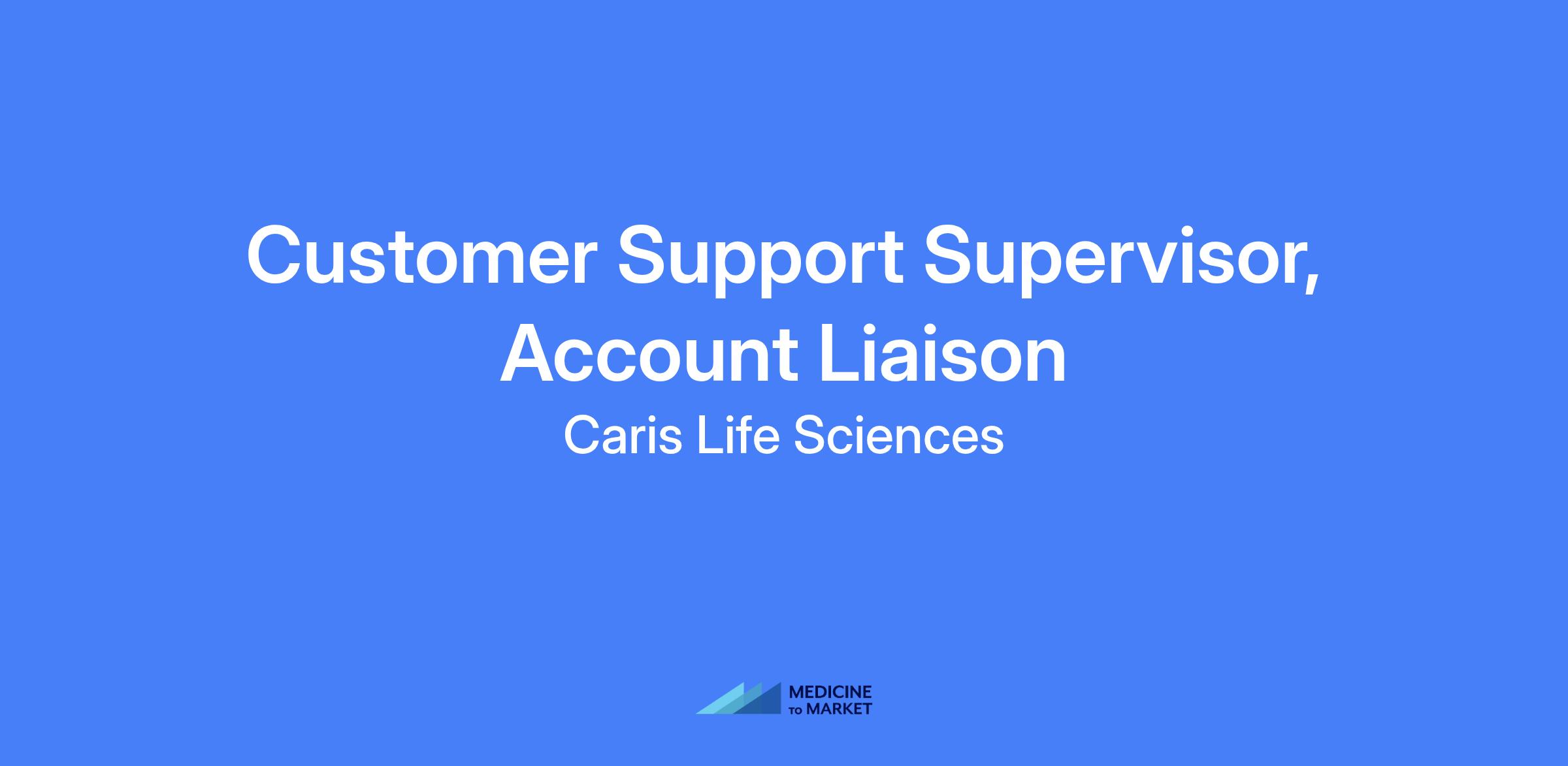 Customer Support Supervisor, Account Liaison at Caris Life Sciences. Oversees a team of account liaisons, ensures daily and monthly service targets are met, and provides guidance on policies, procedures, workflows, and training needs. Maintains customer service standards and supports daily operations of the group.