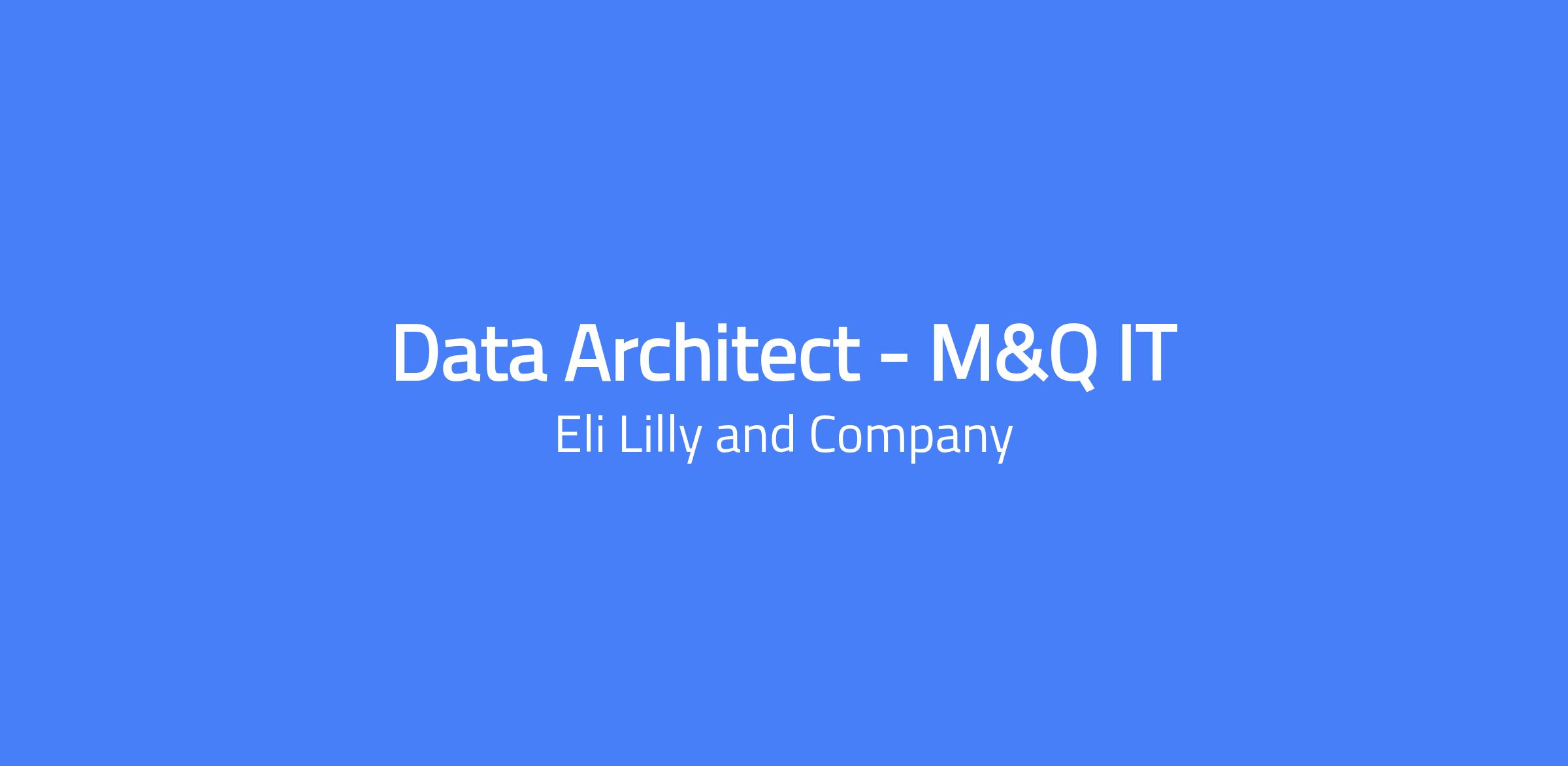 Data Architect - M&Q IT at Lilly Kenosha Manufacturing Site, Kenosha, Wisconsin. Define, design, build, and maintain the data architecture vision, strategy, and principles for the Kenosha site, including standards for naming, describing, governing, managing, modelling, transforming, and searching data across the enterprise or a business function. The role requires deep knowledge of how data is used and the implications on people, processes, capabilities, and technologies including analytics and data integrations. You will work closely with data producers, information management, data engineers, and data consumers to enable data governance, data integration, and secure cloud architectures.