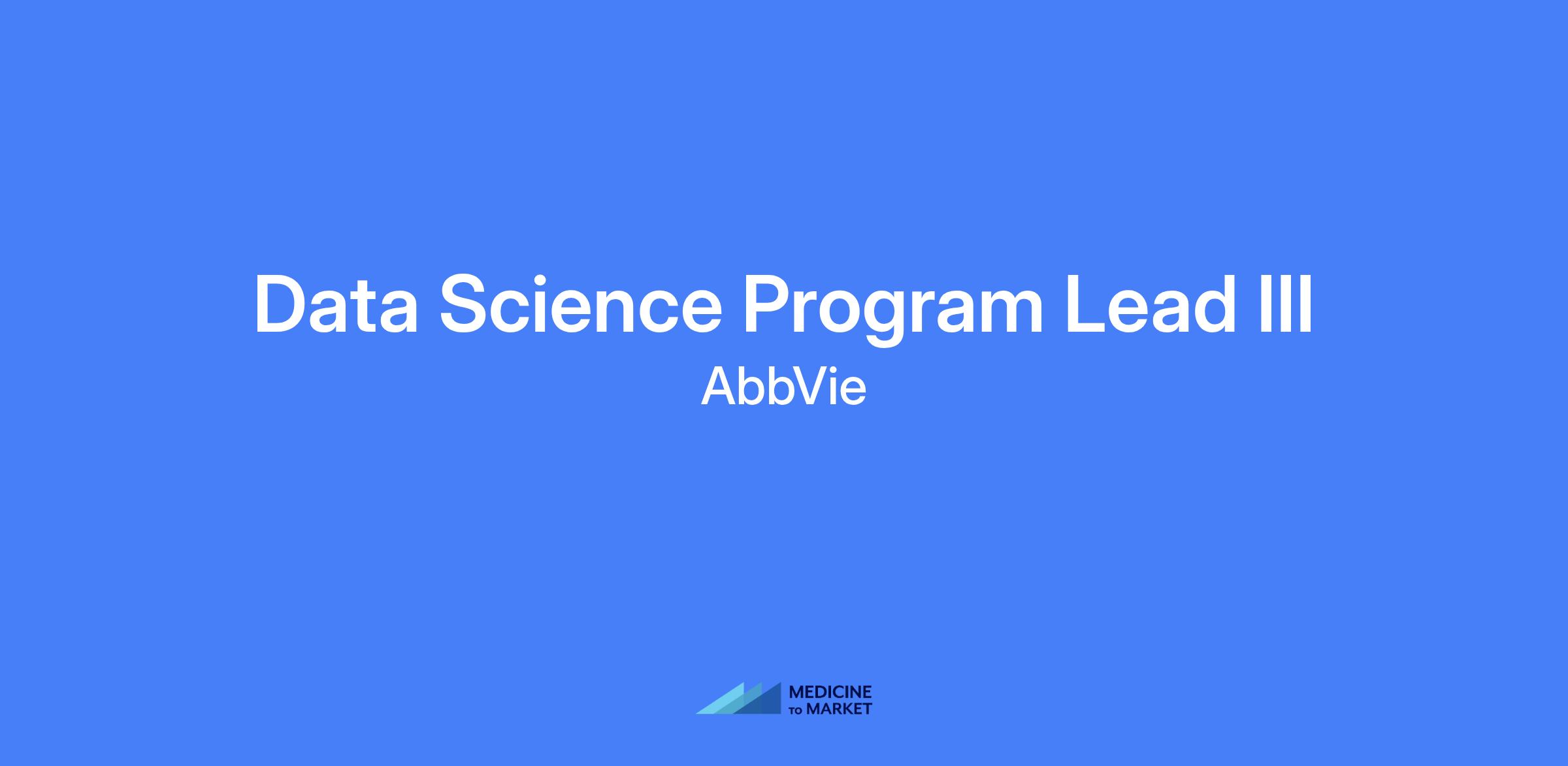 Data Science Program Lead III at AbbVie. Responsible for aligning study teams with program- and study-level strategies, leading operational execution, and coordinating cross-functional teams to deliver clinical trials data value. Drives process improvements, regulatory compliance, and staff development within the Data and Statistical Sciences function.