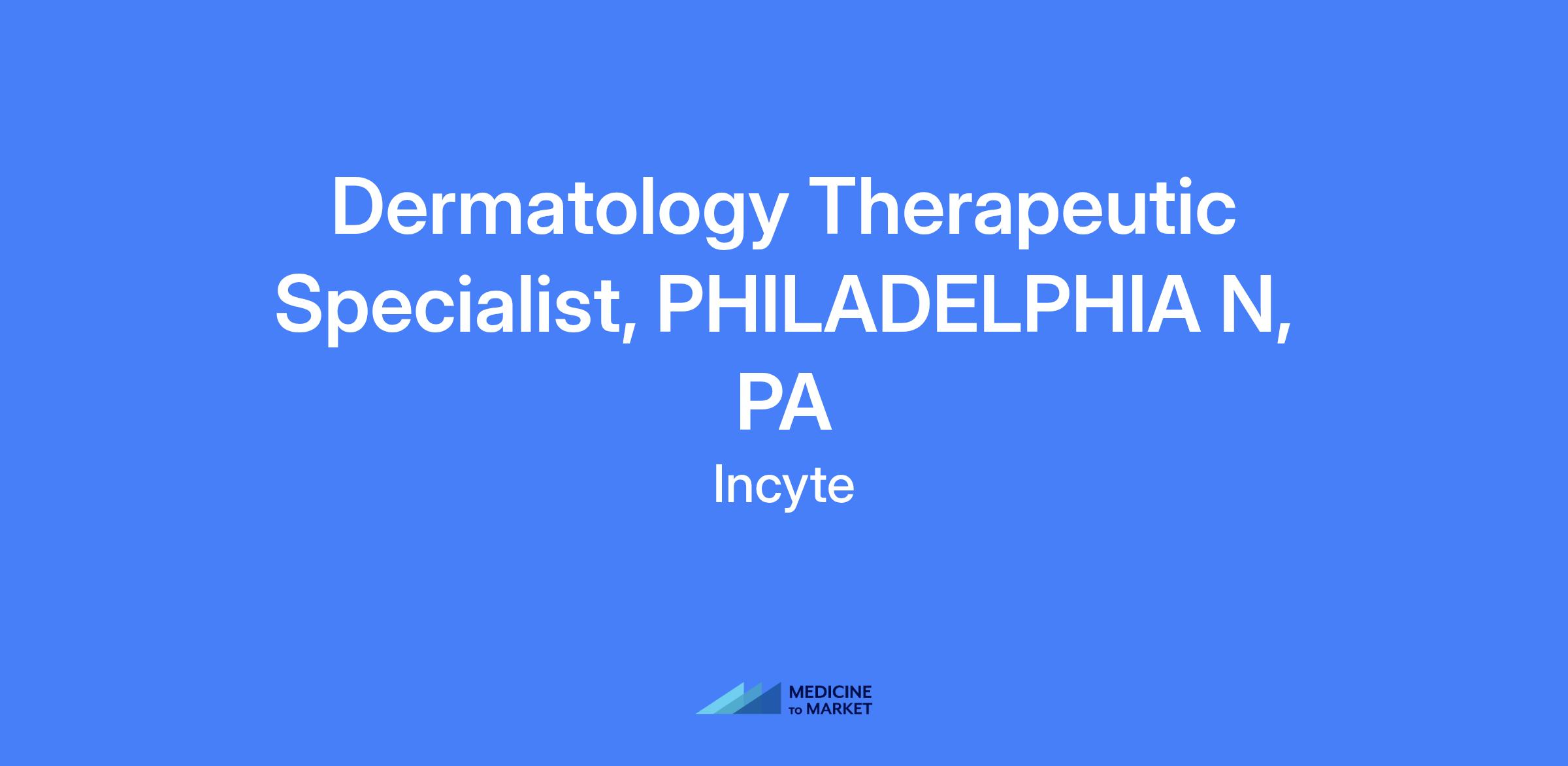 The Dermatology Therapeutic Specialist will focus on consistently achieving or exceeding revenue targets for the U.S. Incyte Dermatology business unit. They will be the primary customer contact and will drive demand and support launches within the dermatology specialty and other key segments. Success requires scientific or biologic product experience, a strong sales background, solid relationships within the dermatology space, and the ability to execute national level strategies around new launch platforms to maximize business opportunities.