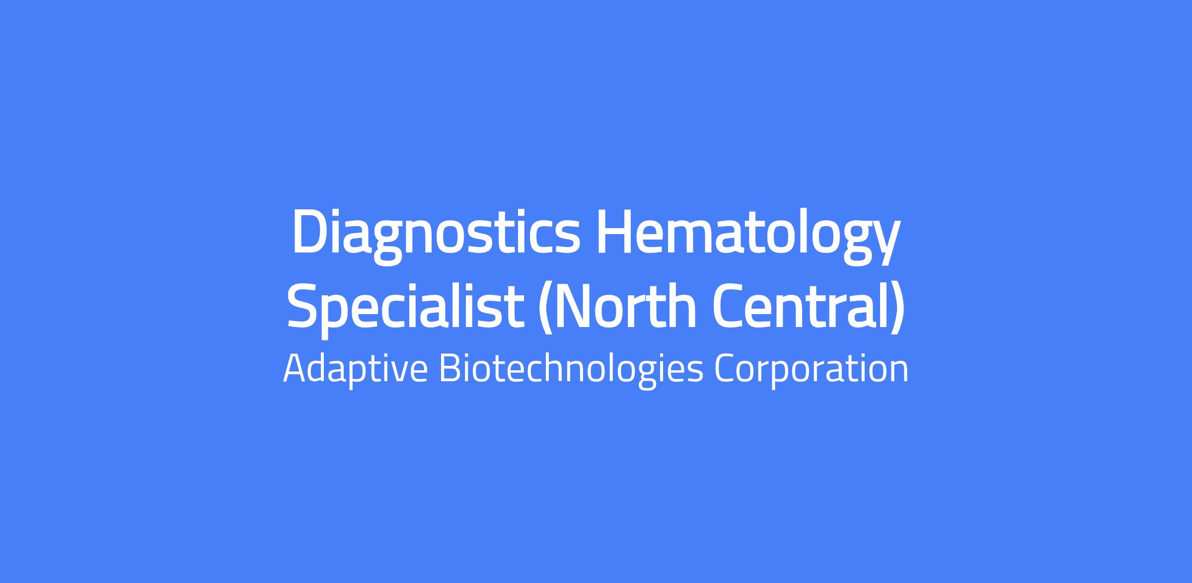 The Diagnostics Hematology Specialist will contribute to Adaptive’s overall sales objective by utilizing their Hematology / Oncology background, relationships, and successful sales experiences to perform assigned sales-related activities to exceed sales goals. This sales role is primarily responsible for the sales growth of all their targeted accounts in the assigned geography. The ideal candidate will be capable of managing the territory and administrative requirements efficiently to drive product sales. This role will act as the primary customer contact for physicians, advanced practice providers, and other healthcare professionals with products, services, and information to enable customers to use and prescribe Adaptive’s portfolio of products safely and effectively.