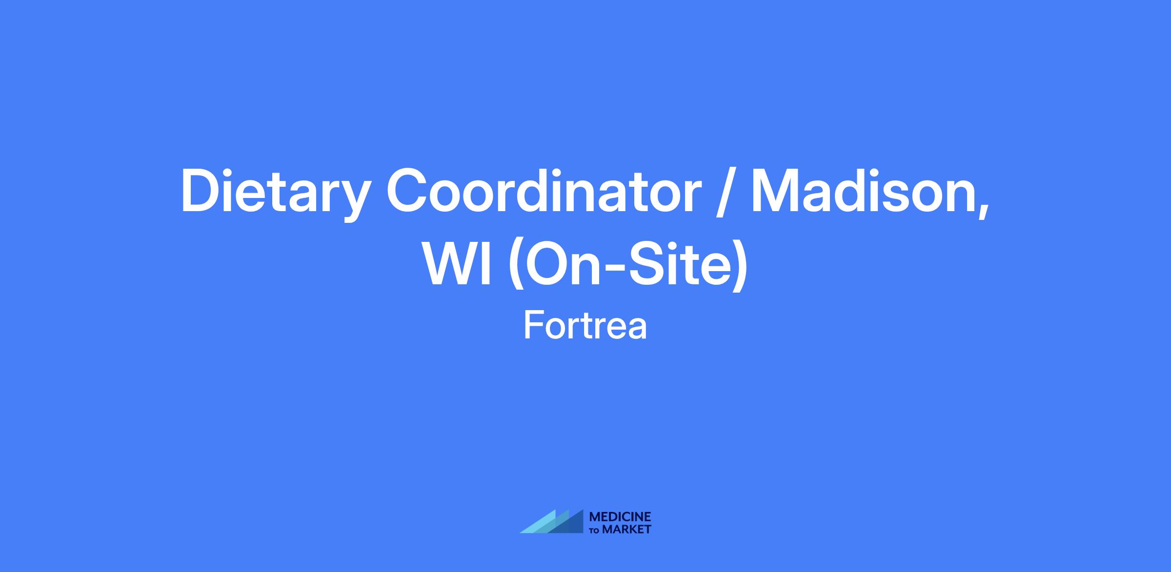 Dietary Coordinator in Madison, WI (On-Site). Full-time, office/clinic-based role coordinating dietary needs for healthy volunteers in early phase clinical research trials. You will work with the study team to support dietary requirements and ensure safe, accurate meal delivery in a fast-paced environment.