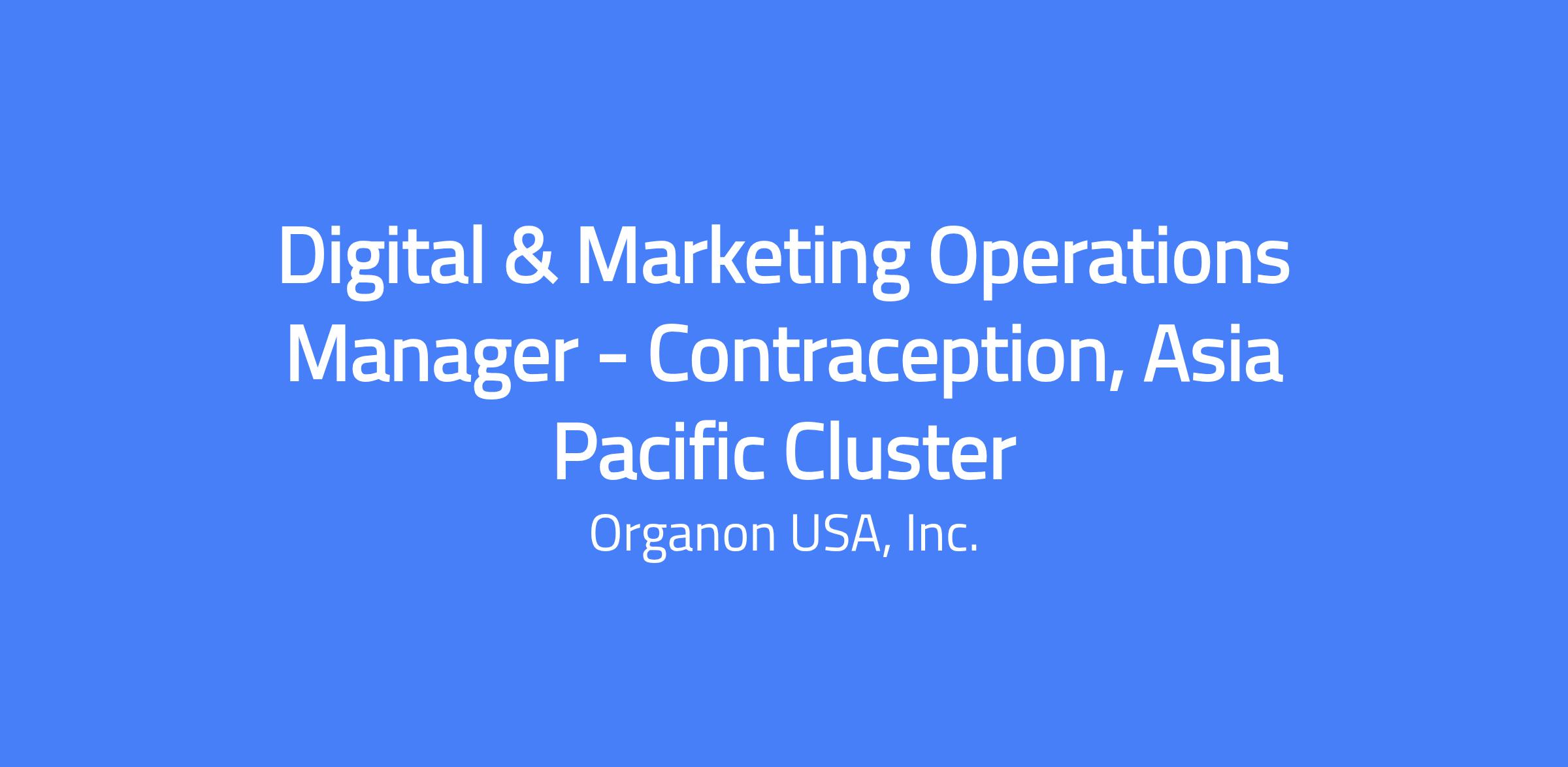 Digital & Marketing Operations Manager - Contraception, Asia Pacific Cluster