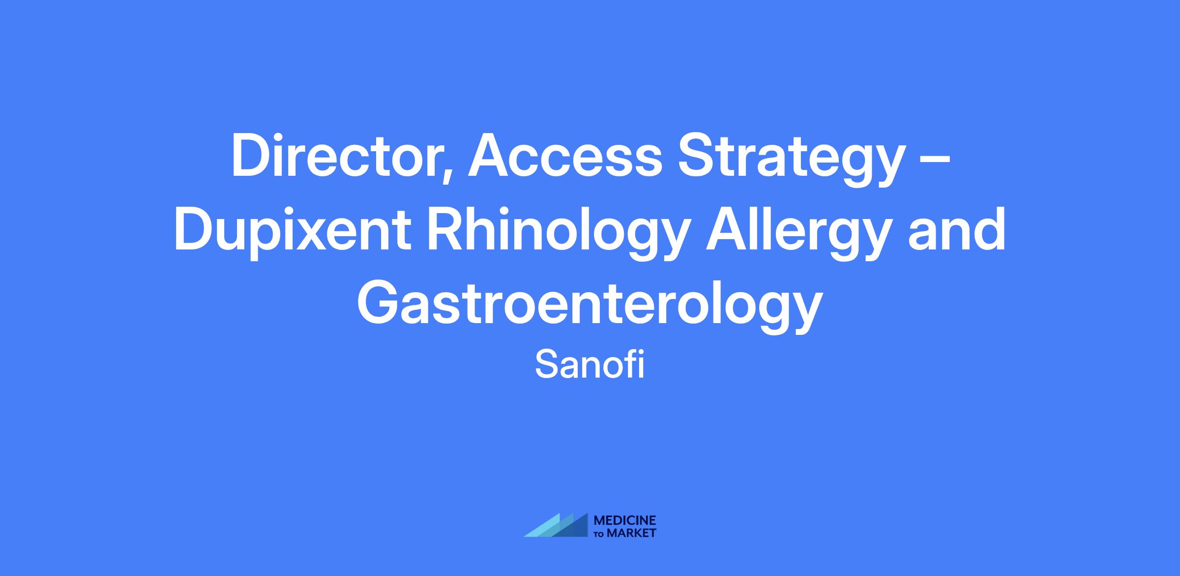 Director, Access Strategy β Dupixent Rhinology Allergy and Gastroenterology. Location: Cambridge, MA, Morristown, NJ.