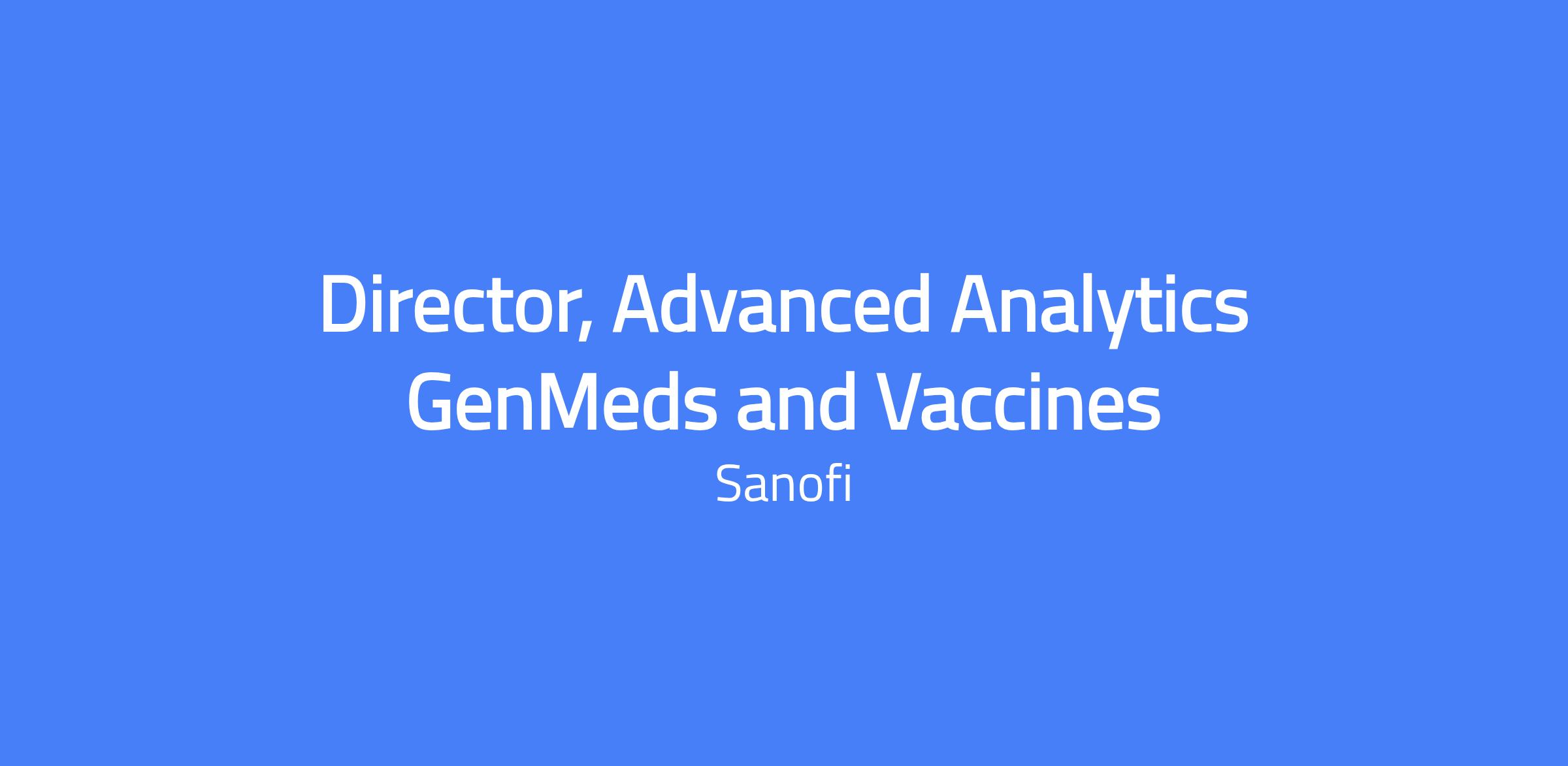 Director, Advanced Analytics - GenMeds & Vaccines will build and lead a team of onshore and/or offshore analysts that uses predictive analytics, including AI/ML models, to assess and improve promotional effectiveness across Sanofi. As a member of the Insights and Analytics (I&A) team, this individual will be an integral strategic partner to Sanofi Commercial leadership, leading the development and application of cutting-edge analytical capabilities to achieve the full potential of Sanofiβs expanding portfolio. This position reports to the Sr Director, US Marketing Sciences and will be based in Cambridge, MA or Bridgewater, NJ.