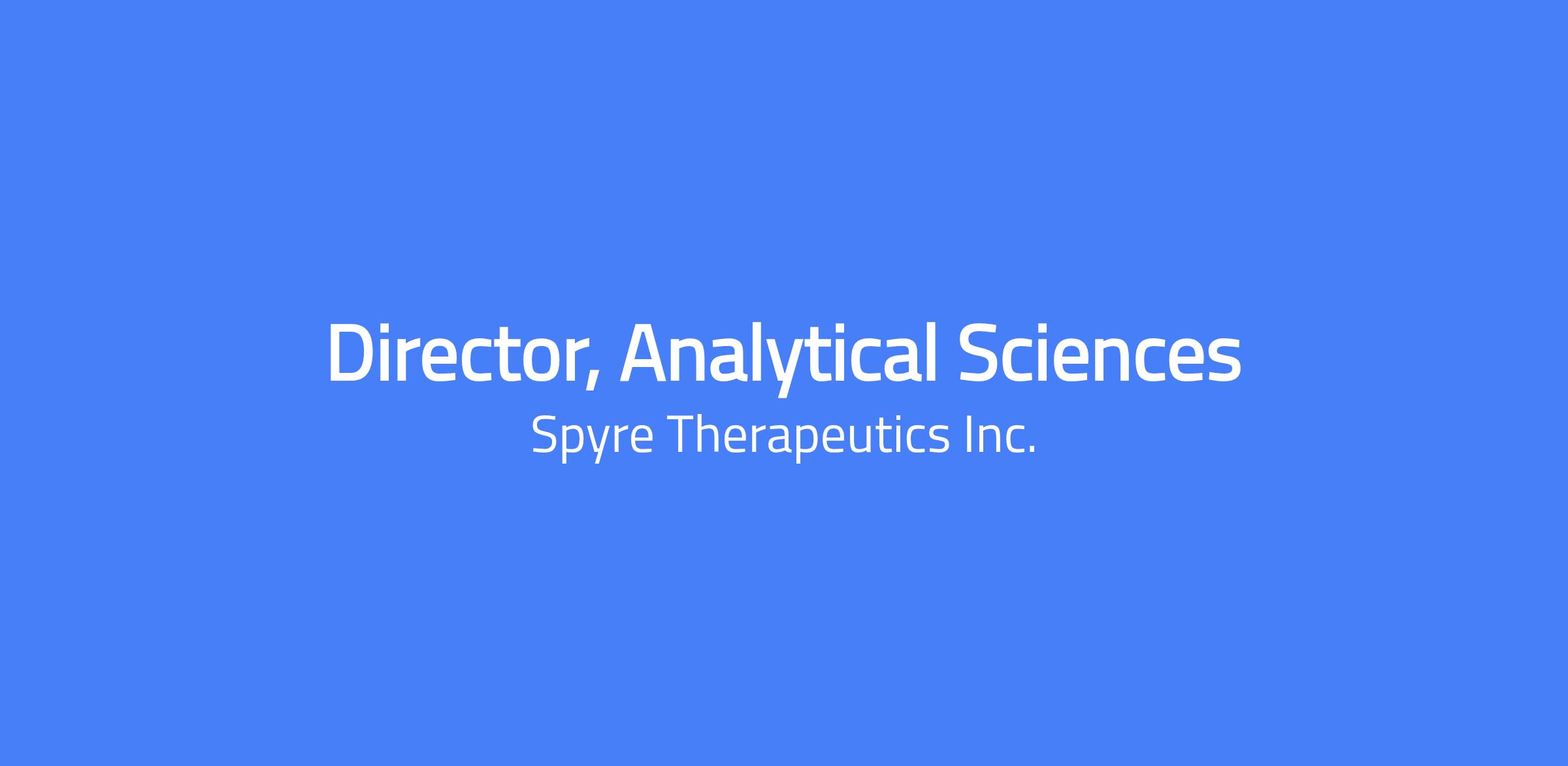 Director, Analytical Sciences is responsible for overseeing biologics analytical development and testing activities across Spyre’s clinical and late stage mAb programs. It is a key leadership role in the analytical organization and directly reports to the Vice President of the analytical group. This role provides strategic and operational leadership for analytical method development, validation, transfer, and GMP quality control testing, in close collaboration with global CDMO partners. The Director establishes strong cross‑functional partnerships with development groups within Technical Operations as well as with Quality Assurance to design and implement robust analytical control strategies that align with regulatory requirements and industry best practices. The role also drives proactive planning to support efficient progression of drug candidates across clinical stages.Â