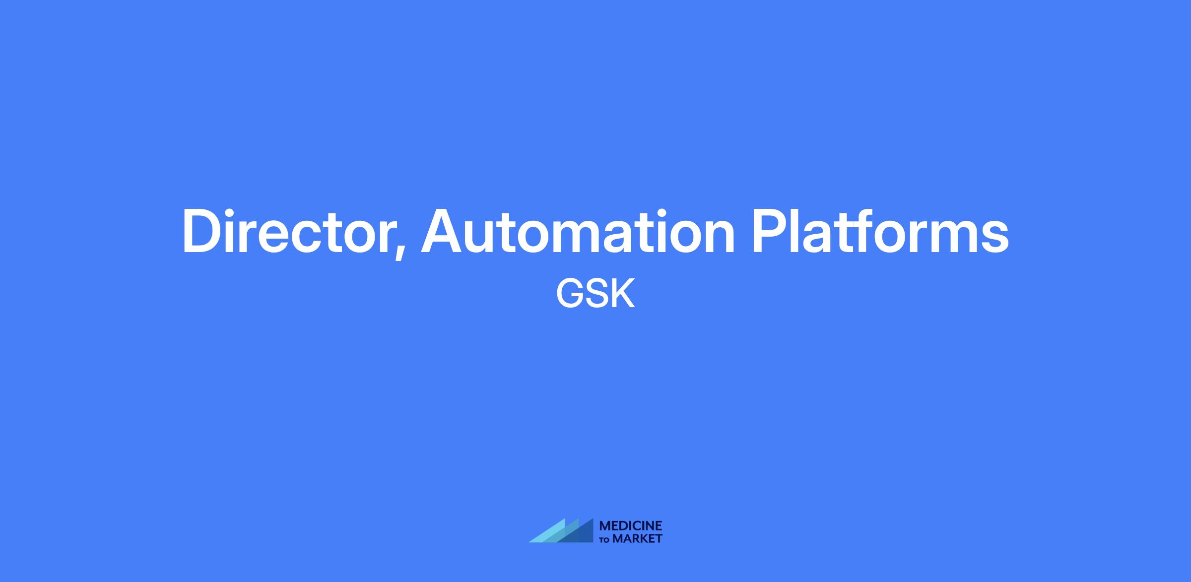 Director, Automation Platforms at GSK. Leads a global automation leadership team within the RTech Automation group to design, deploy, and optimize automated platforms that enable biology and data at scale across research workflows. Builds partnerships across interdisciplinary teams to drive adoption of automation technologies in drug discovery and development.