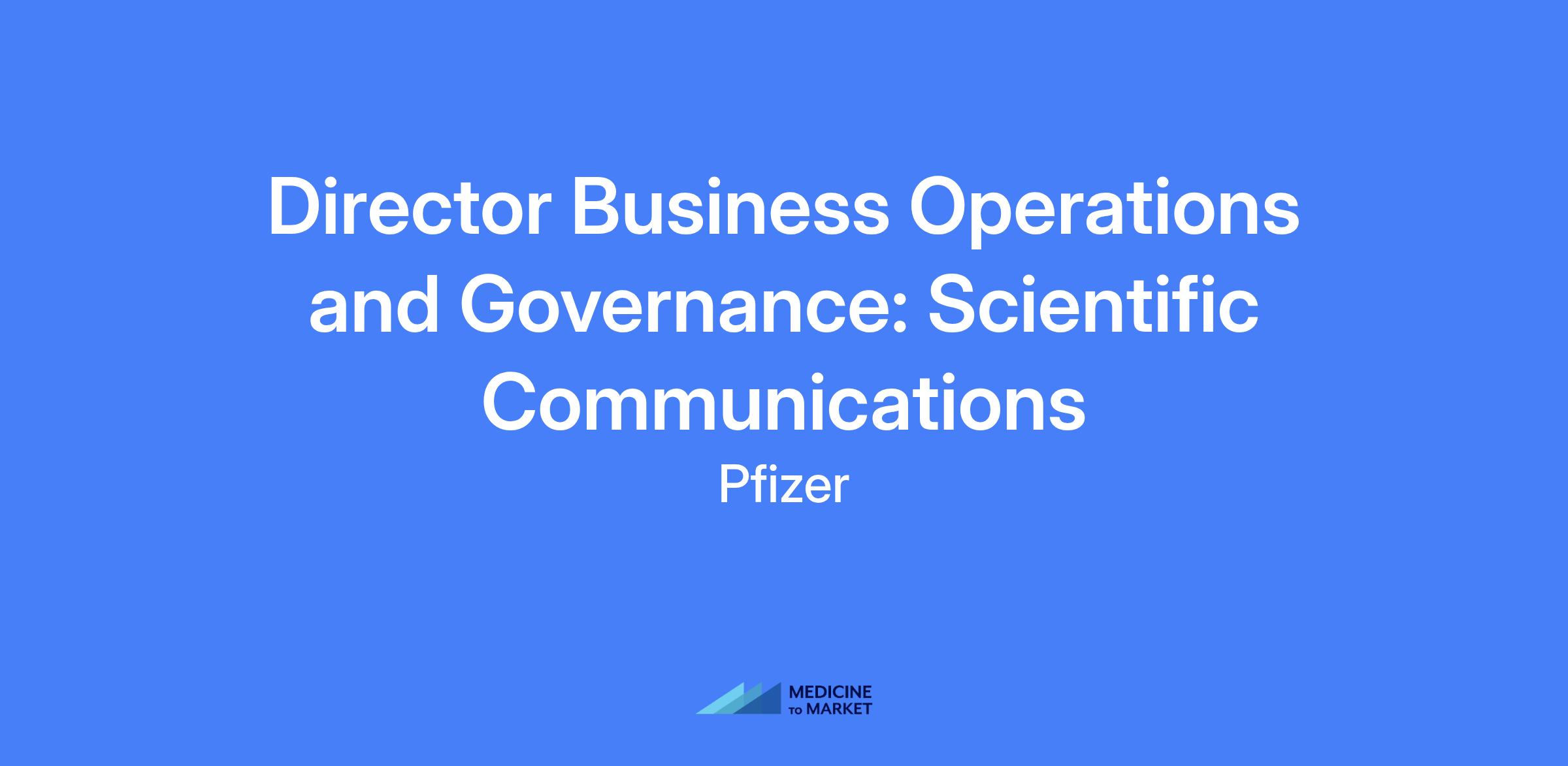 On-Site Hybrid role. The Director of Business Operations and Governance for Oncology Medical Strategy Management (MSM), which includes US Field Medical, Oncology Medical Outcomes, and Scientific Communications, will oversee MSM business processes and governance across US Field Medical, US Medical Outcomes, and Scientific Communications. The role reports to the Business Operations and Governance Lead and integrates Medical Affairs and Scientific Communications to inform strategic objectives, acting as a strategic thought partner in strategy, operations, finance, and communications, with a strong emphasis on continuous improvement. It also serves as an interface among Pfizer Oncology Medical franchise teams and the Pfizer US Medical platform groups, collaborating cross-functionally as needed.