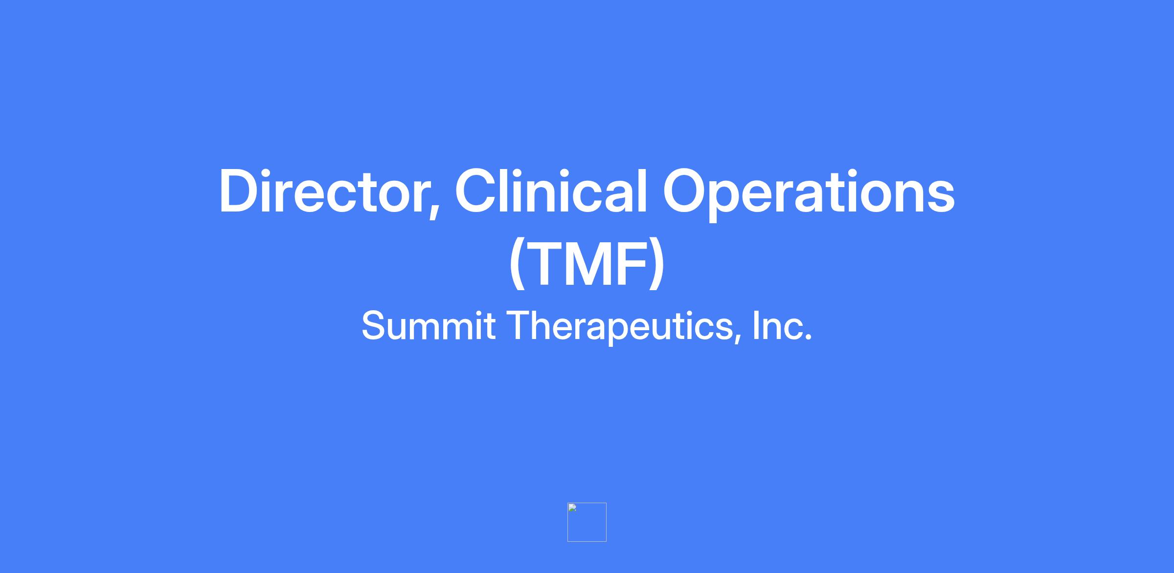 The Director, Clinical Operations (TMF) is a clinical research drug development expert accountable for leading and optimizing the delivery of our next generation, integrated platform for clinical trial operations and document management systems including the people, process, technology that support these functions. The individual leads transformative initiatives that create effective and efficient processes that meet high compliance standards; collaborating across Development (focus on Clinical Operations); serving as a change manager to implement new systems and practices that support the organization as we continue to grow. The individual is an effective clinical operations team leader accountable for talent acquisition, development, management, and evaluation of team members in his/her/their group. This includes responsibility for the βWhatβ (delivery to performance goals) and the βHowβ (deliver consistent with Summit Therapeutics core values). The individual is also a member of the Clinical Operations extended leadership team and as such supports and influences the direction of the Clinical Operations extended team. The individual collaborates with team members to reinforce and operationalize strategic direction and solutions that support the ability to deliver on commitments to the organization and to patients. This position reports to a VP, Head of Clinical Operations.
