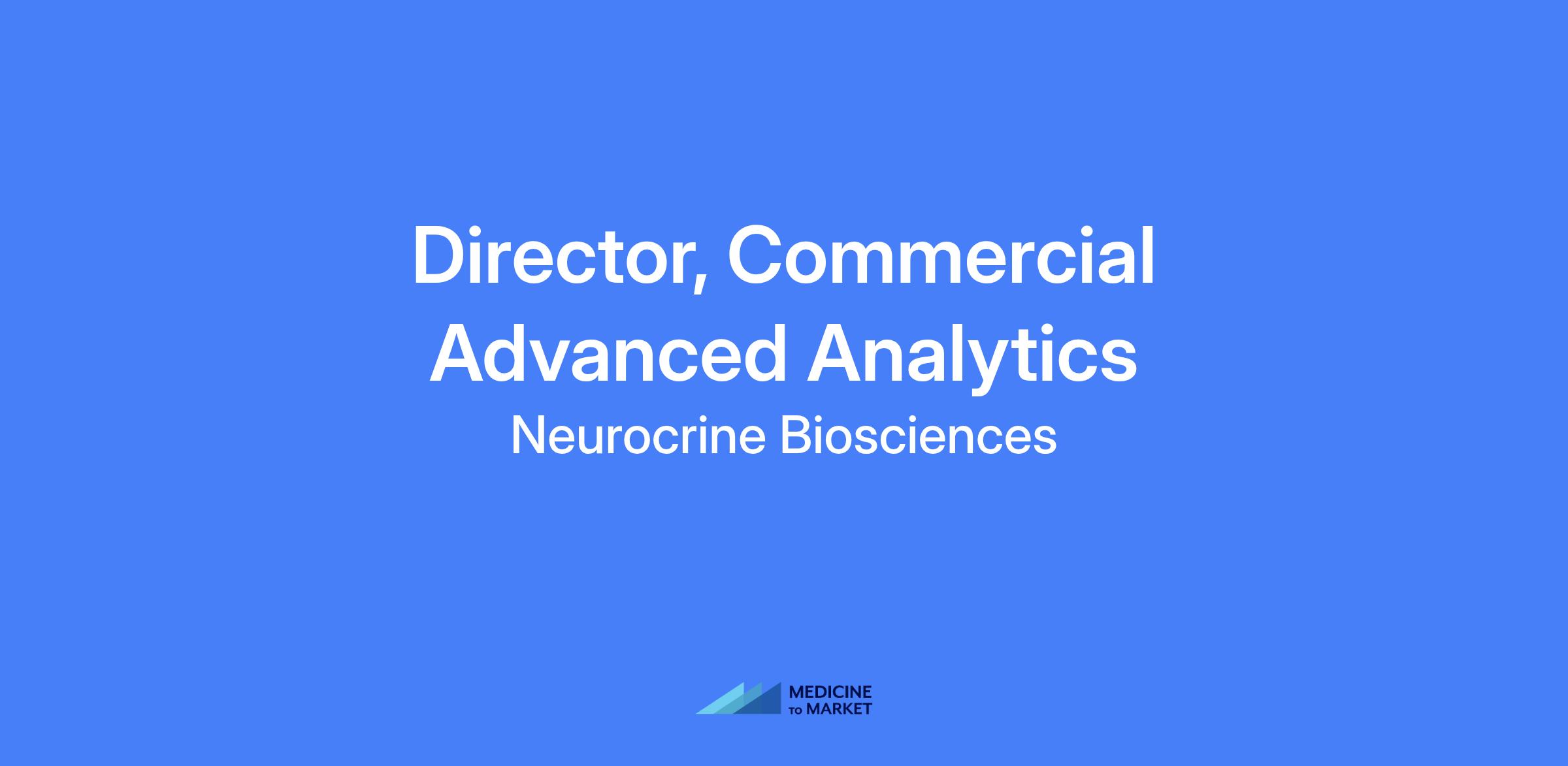 Director, Commercial Advanced Analytics — The Advanced Analytics and Insights Director will play a critical role developing the Advanced Analytics and Insights Function to drive deeper insights, make predictions, and generate recommendations that optimize Neurocrine’s commercial portfolio. This role leads, mentors, and evaluates staff, collaborates across functions, and applies advanced analytics to inform decision making in channel strategy, customer targeting, patient journeys, promotional mix, ROI measurement, brand spend optimization, and sales force effectiveness.