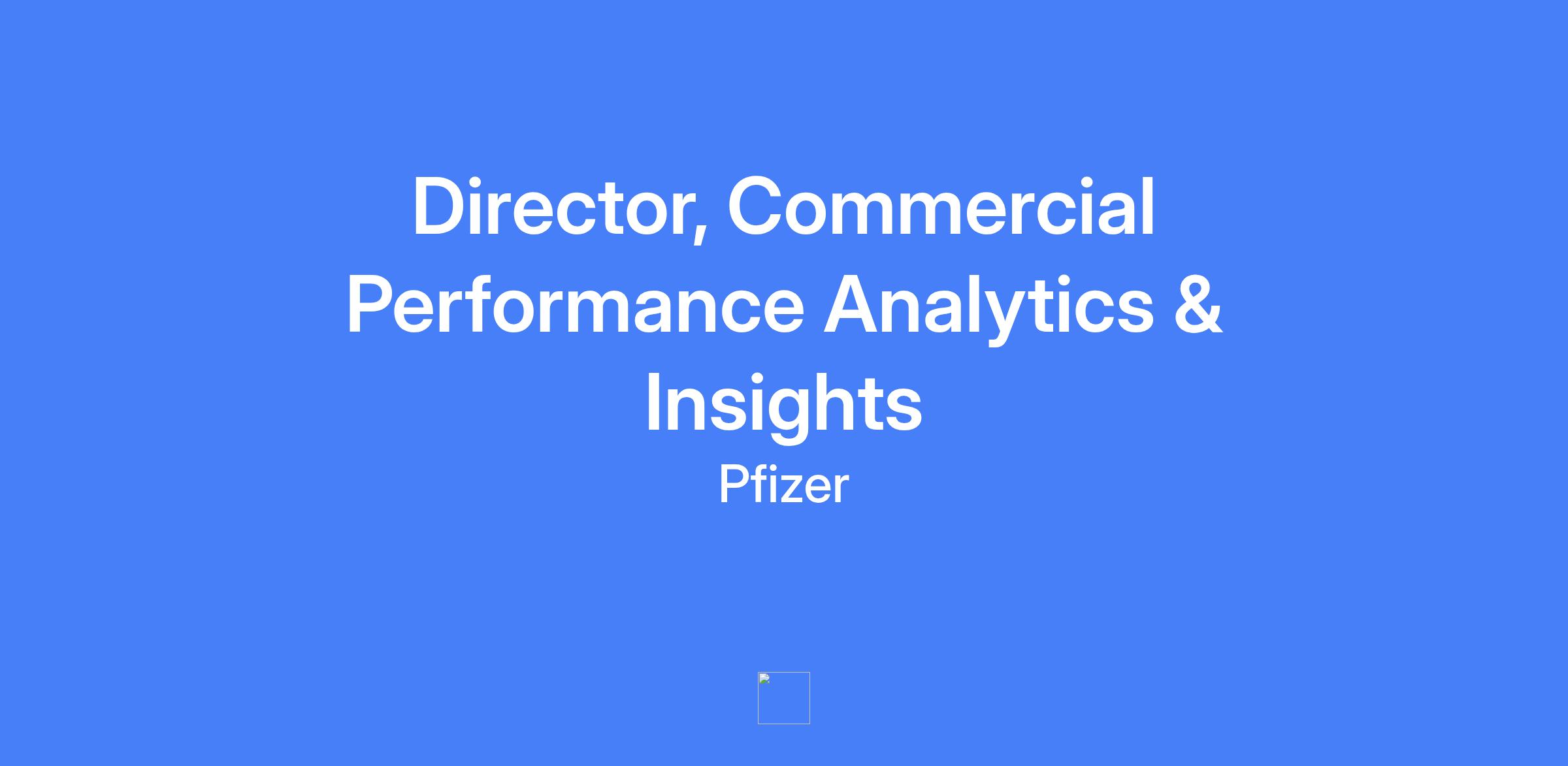 Director, Commercial Performance Analytics & Insights. Global Commercial Analytics (GCA) harnesses data to drive analytical insights informing Pfizer's critical business questions. The role partners with senior stakeholders in the Chief Marketing Office (CMO) and other groups to drive performance tracking and reporting for commercial performance, standardize the reporting ecosystem, and implement best-practice insights generation processes. The role is dynamic, fast-paced, and highly collaborative, contributing to proactive thought leadership and innovative research capabilities within a global team.