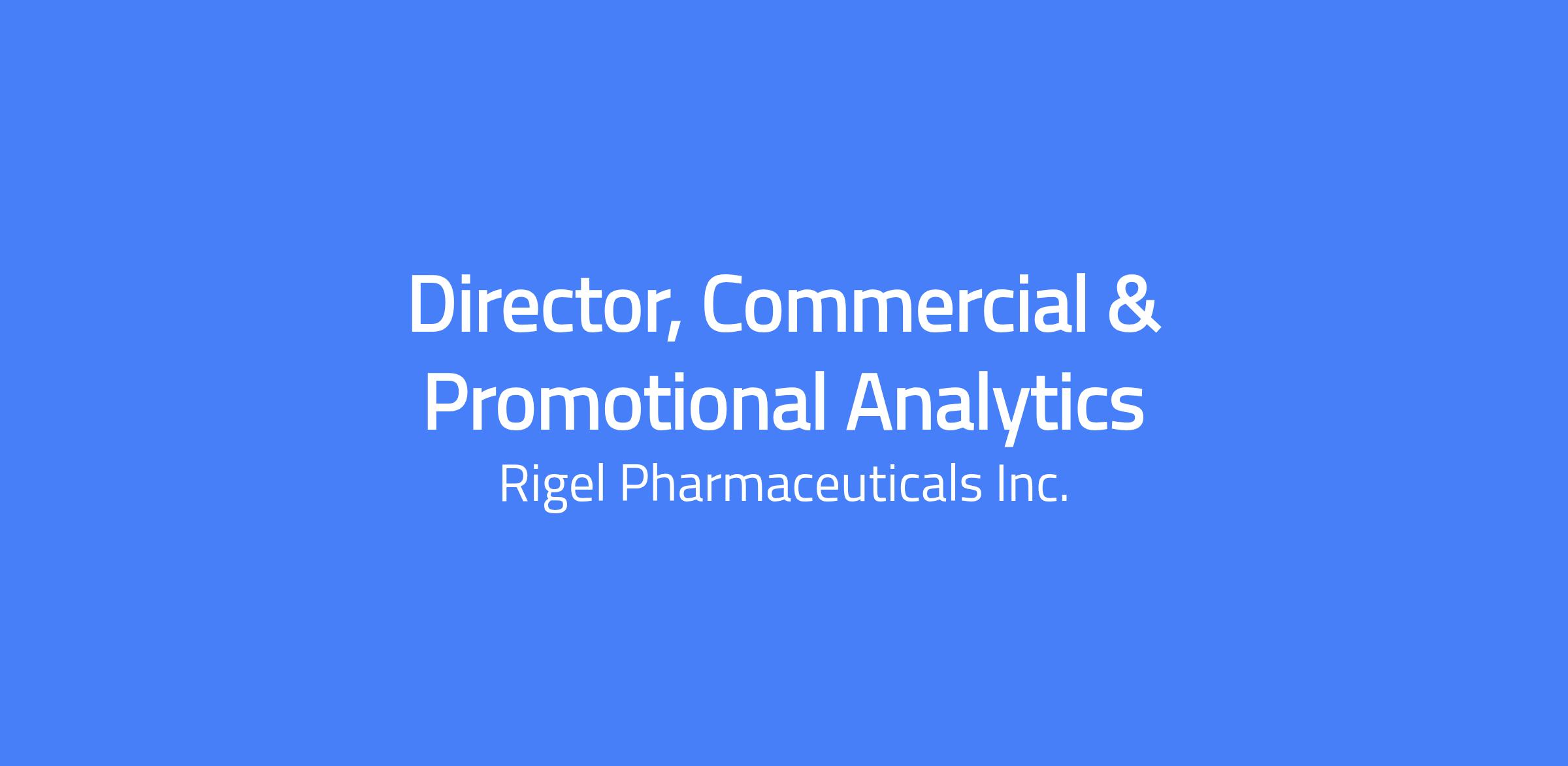 Director, Commercial and Promotional Analytics will be responsible for leading the strategy, design, and execution of commercial and promotional analytics to drive evidence-based decision making across Rigel’s commercial portfolio. This role combines advanced analytics, business acumen, and strategic partnership to optimize brand performance, promotional effectiveness, and investment allocation. The role will have direct ownership of complex cross-functional analytics projects supporting Commercial Strategy, Marketing, and other partners across the Commercial organization.
