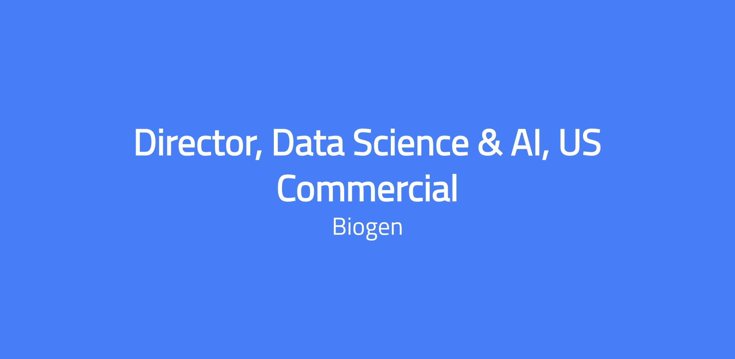 Director, Data Science & AI, US Commercial is responsible for generating and delivering data science and AI capabilities to enhance insights across Biogen North America Commercial. The role influences business partners, leads the execution and interpretation of AI/ML models, frames problems, and crafts data-driven solutions, while clearly communicating insights. It is dynamic, fast-paced, and highly collaborative, covering a broad range of strategic topics critical to the business. The ideal candidate has a passion for data-driven problem solving, a strong background in data science and AI, and proven experience building and leading high-performing teams.