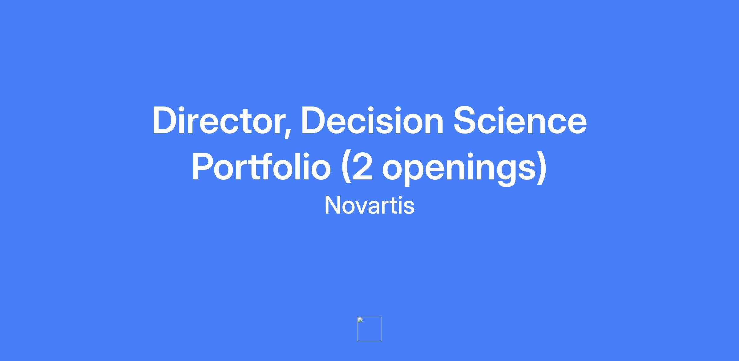 Director, Decision Science Portfolio (2 openings) — East Hanover, NJ. Hybrid work arrangement with 15% travel. Leads data-driven insights and governance for enterprise and portfolio decisions within the Insights and Decision Science team at Novartis.