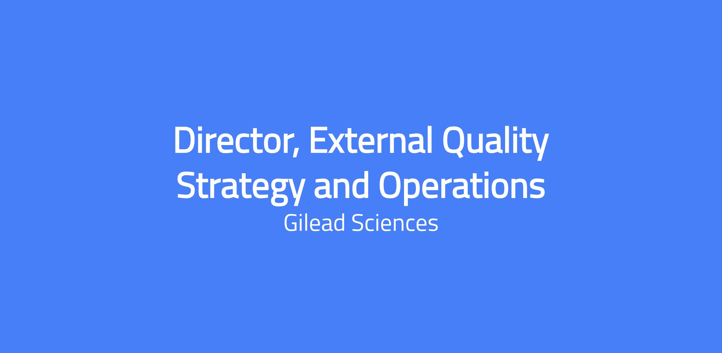 Director, External Quality Strategy and Operations responsible for leading a team of Quality Professionals to drive strategy development and implementation of standardized communication, training and rollout of quality standards, requirements, systems and tools across Gilead’s contract organization global network. The role emphasizes cross-functional collaboration, Operational Excellence, and quality transformation initiatives within a biotech/pharmaceutical development environment.