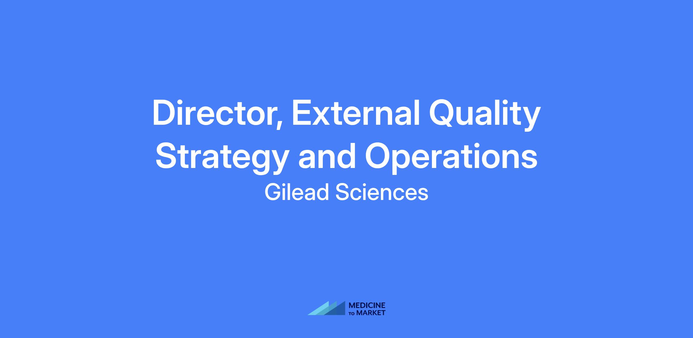 Director, External Quality Strategy and Operations at Gilead Sciences PDM External Quality. Lead a team of Quality Professionals to drive strategy development and implement standardized communication, training, and rollout of Gilead’s Quality standards, requirements, systems, and tools across the contract organization global network. Focus on cross-functional OpEx initiatives, quality event management, and quality transformation initiatives to positively impact the business.