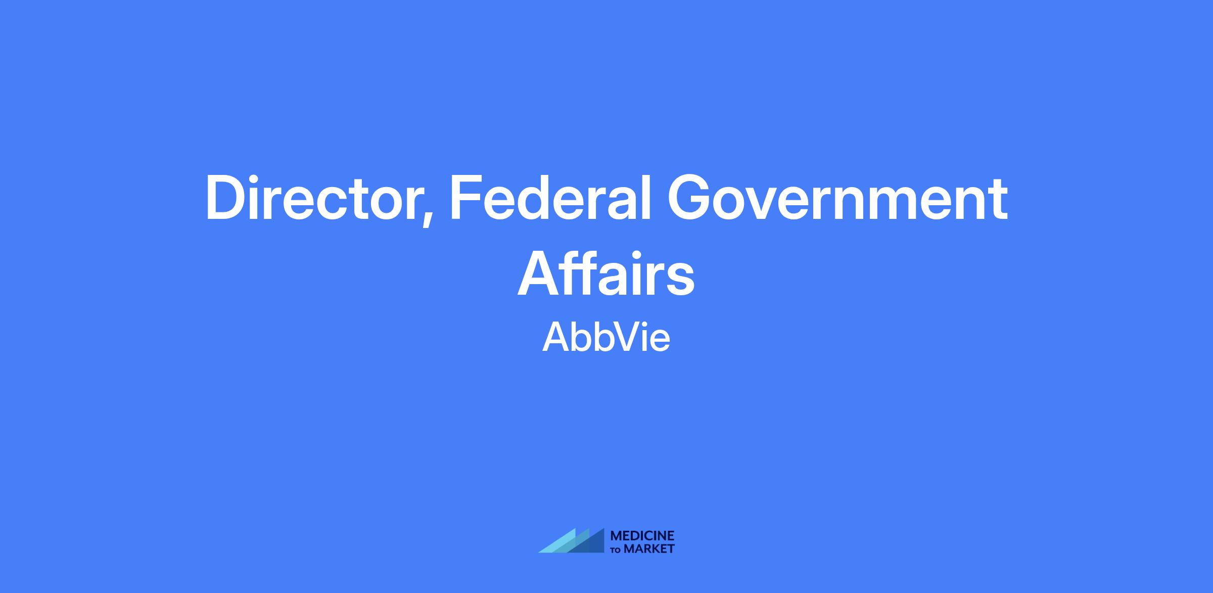 Director, Federal Government Affairs. Represents AbbVie’s interests before the U.S. Government with a focus on the Executive Branch, designing and executing comprehensive advocacy strategies to advance AbbVie priorities across policies impacting the company and investments in unmet medical needs.