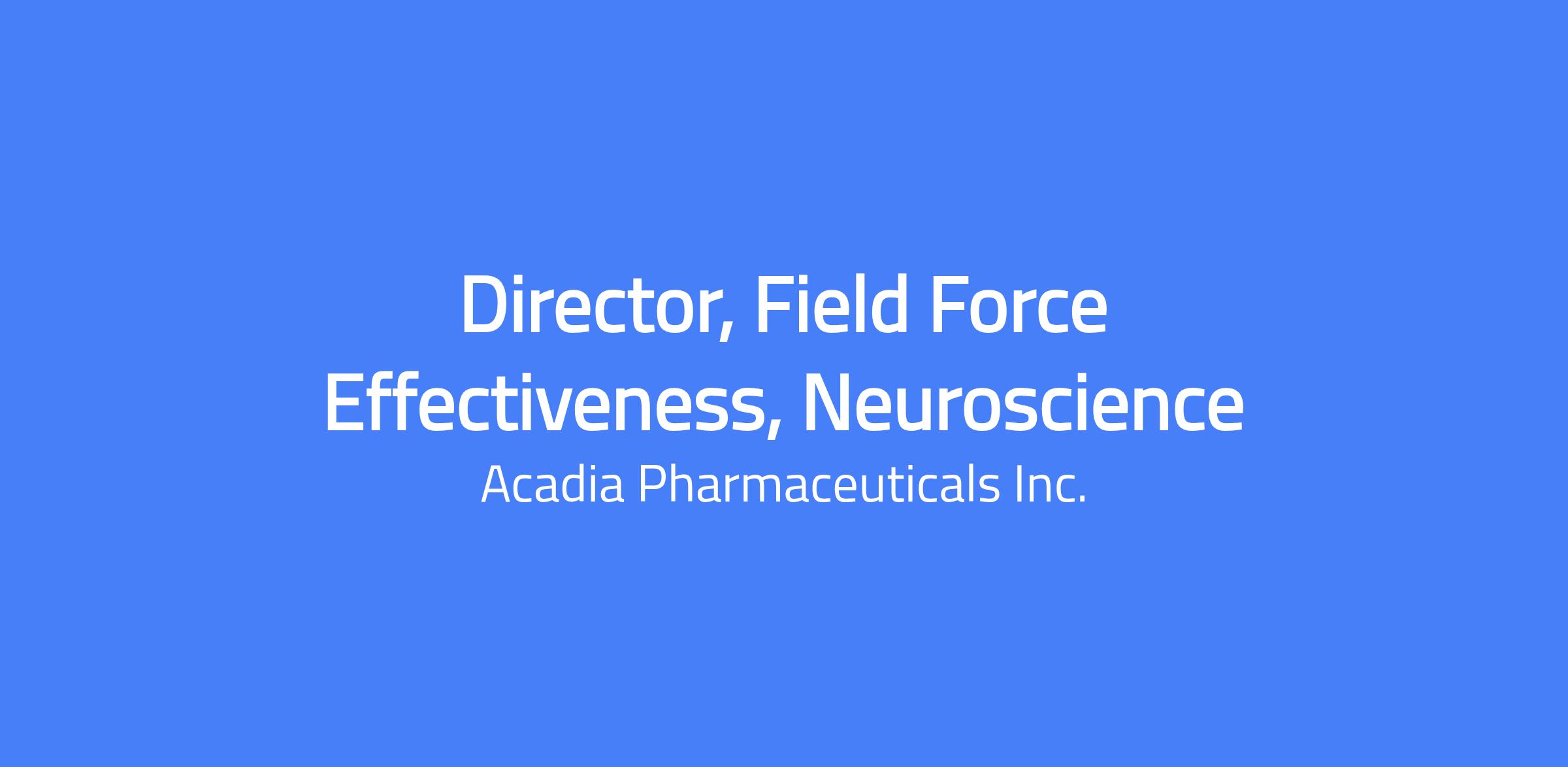 Director, Field Force Effectiveness for Acadia’s Neuro-Psych Franchise. Lead the strategy, design, and execution of initiatives that drive the performance and impact of field-based teams. Partner with Commercial, Marketing, Patient Services, and Sales leadership to ensure teams are optimally deployed, effectively targeted, and motivated to deliver patient outcomes. Based in San Diego, CA or Princeton, NJ with a hybrid schedule requiring office presence three days per week on average.