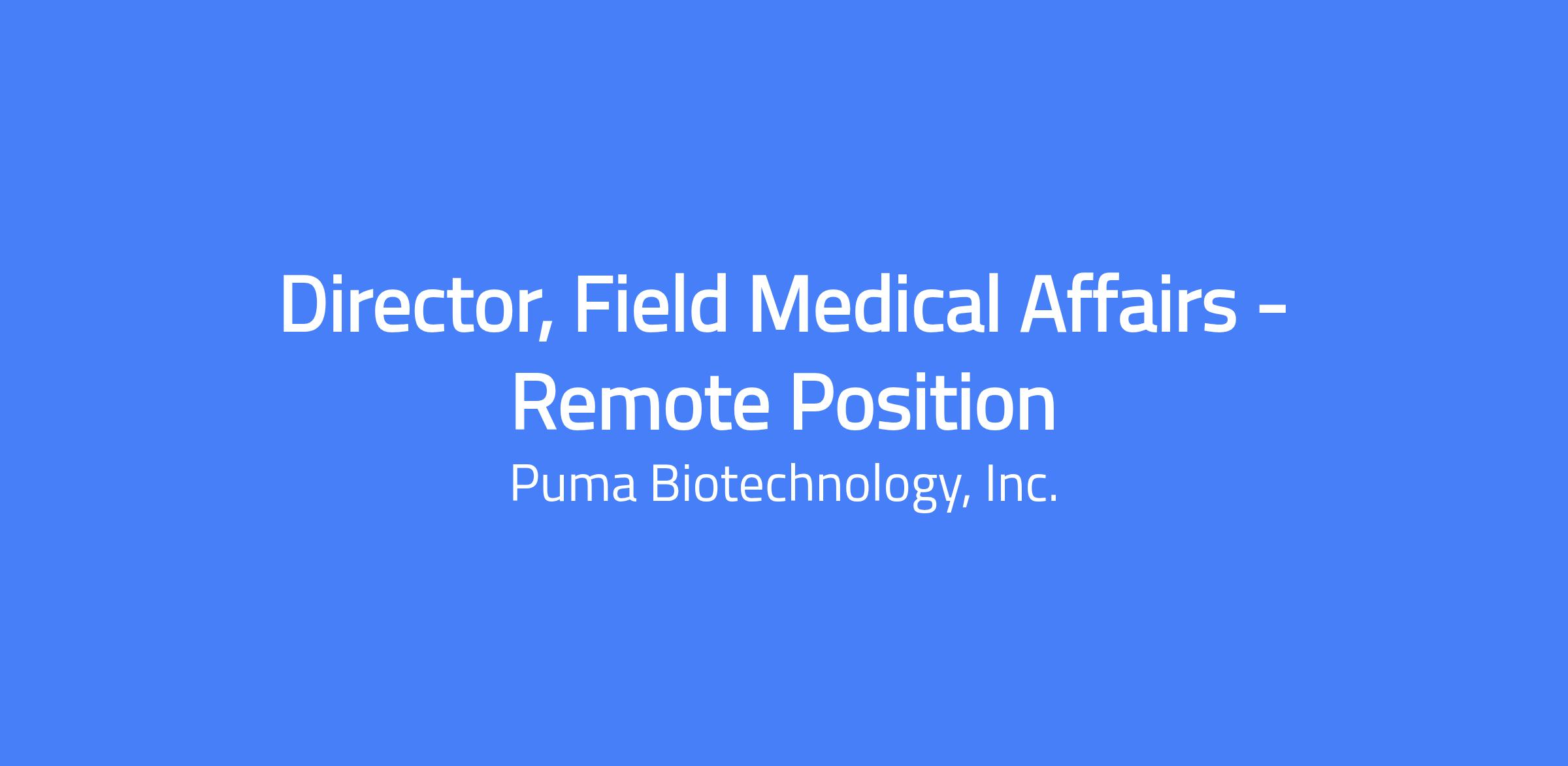 The Director of Field Medical is a field-based leadership role that manages the US field-based Medical Affairs team. This position provides therapeutic area and product expertise for solid tumor indications across multiple customer segments and initiatives. The role plans and executes medical engagements and oversees the Medical Science Liaison (MSL) team, working closely with Commercial and Clinical counterparts to contribute to Puma's medical vision and strategy. Remote position.