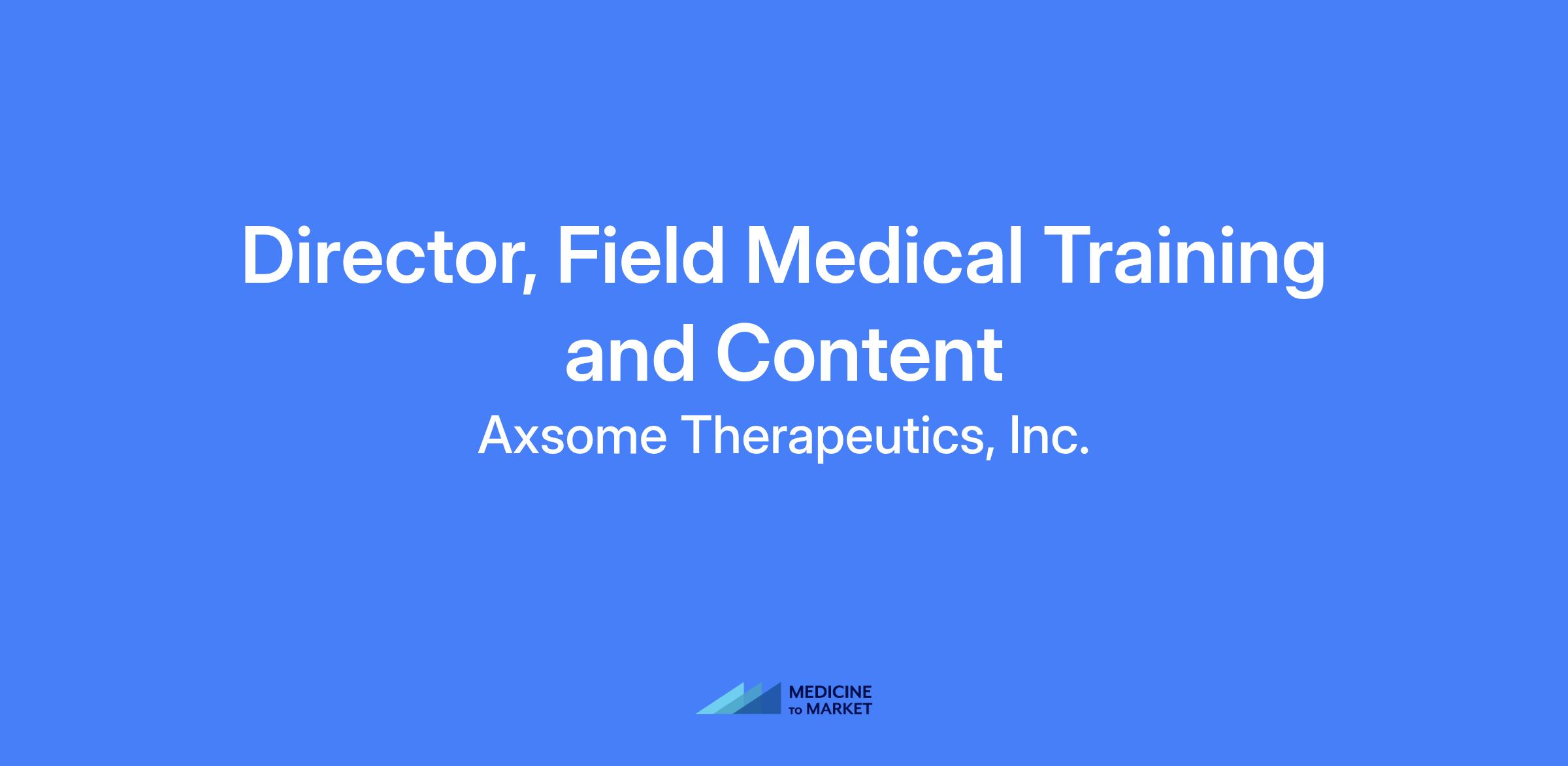 Director, Field Medical Training and Content. This role is responsible for creating and delivering training programs that enhance both scientific knowledge and key professional skills for field medical teams. It will collaborate with internal Medical Affairs to plan and manage the development of scientific slide decks and engagement tools used by Field Medical Teams, with coordination across multiple Medical Affairs functions. Reporting to the Executive Director of Field Medical, the role serves as a strategic member of the Field Medical Leadership Team. This position is based at AxsomeβΓΓ΄s HQ in New York City with on-site requirements of at least three days per week.
