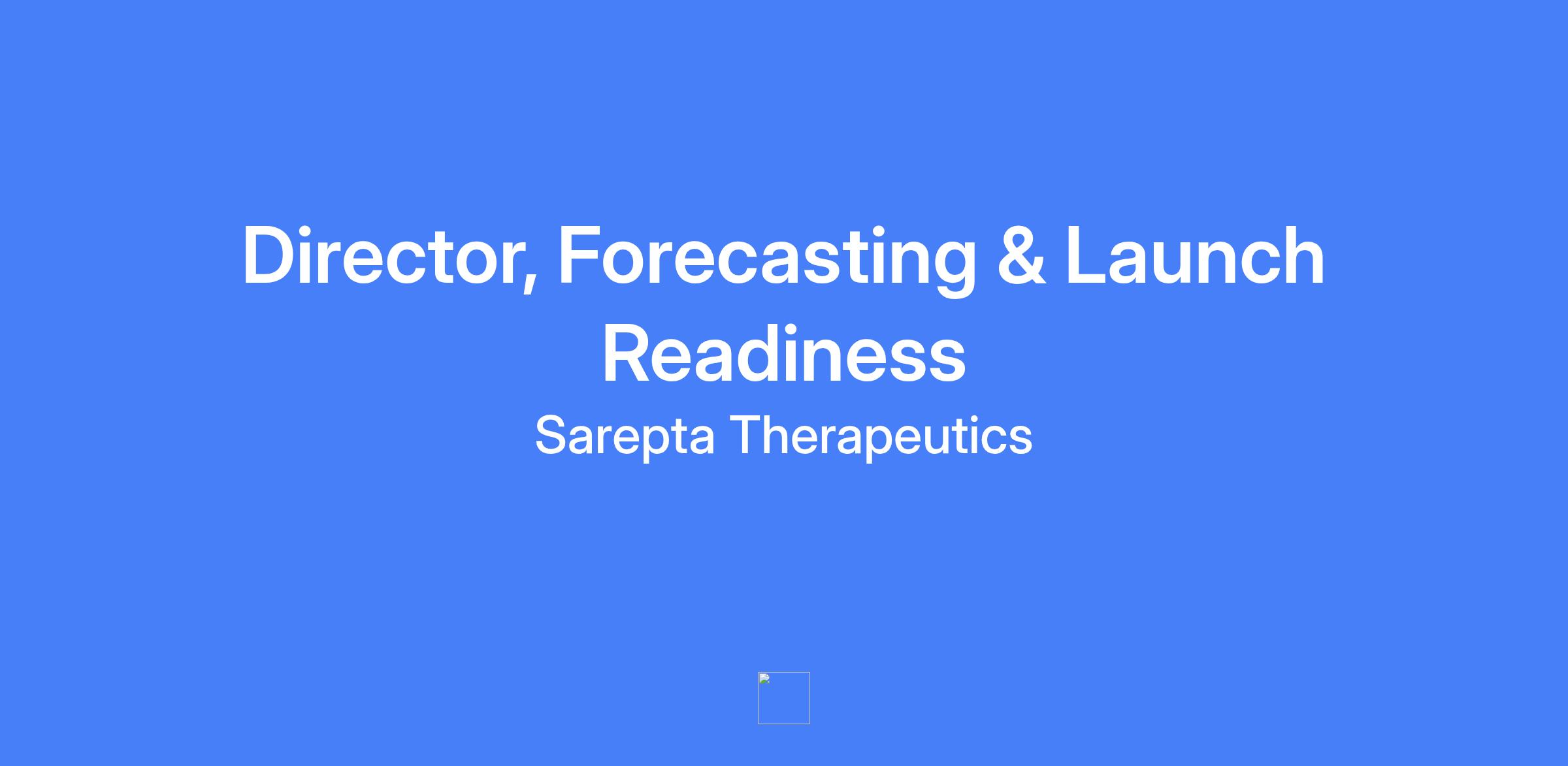 Director, Forecasting & Launch Readiness responsible for commercial forecast development to support Sarepta’s current platform and pipeline products, partnering with key stakeholders to develop robust, pressure-tested forecast models.