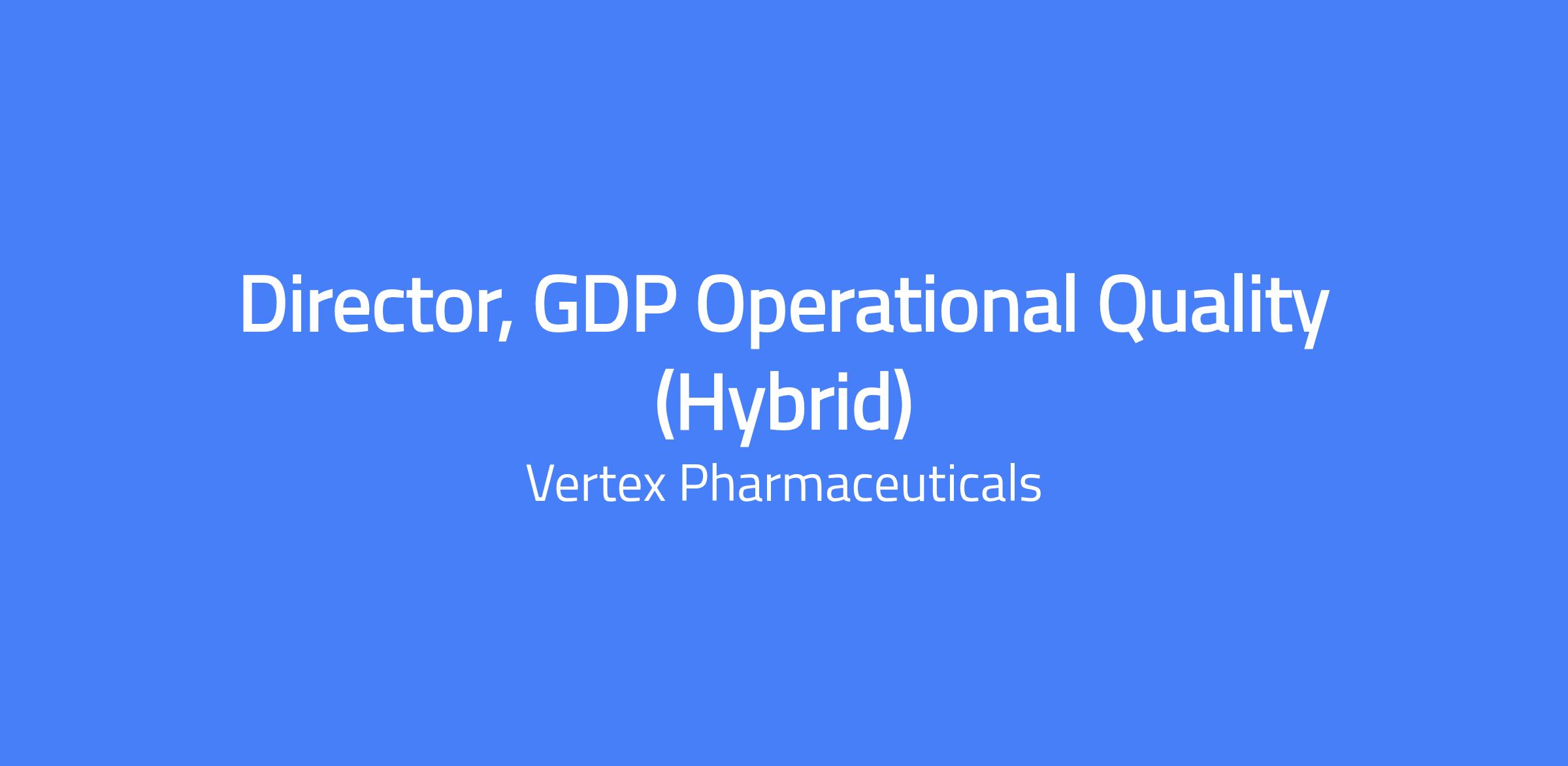The Director, GDP Operational Quality partners with Trade Operations to support the distribution of Vertexβs commercial product portfolio. The role oversees team activities, personnel development, and ensures timely completion and quality of deliverables/goals within their remit. It supports GDP quality operations for all distribution activities within the US; key stakeholders include Trade Operations, Vendor Quality Management & Quality Compliance.
