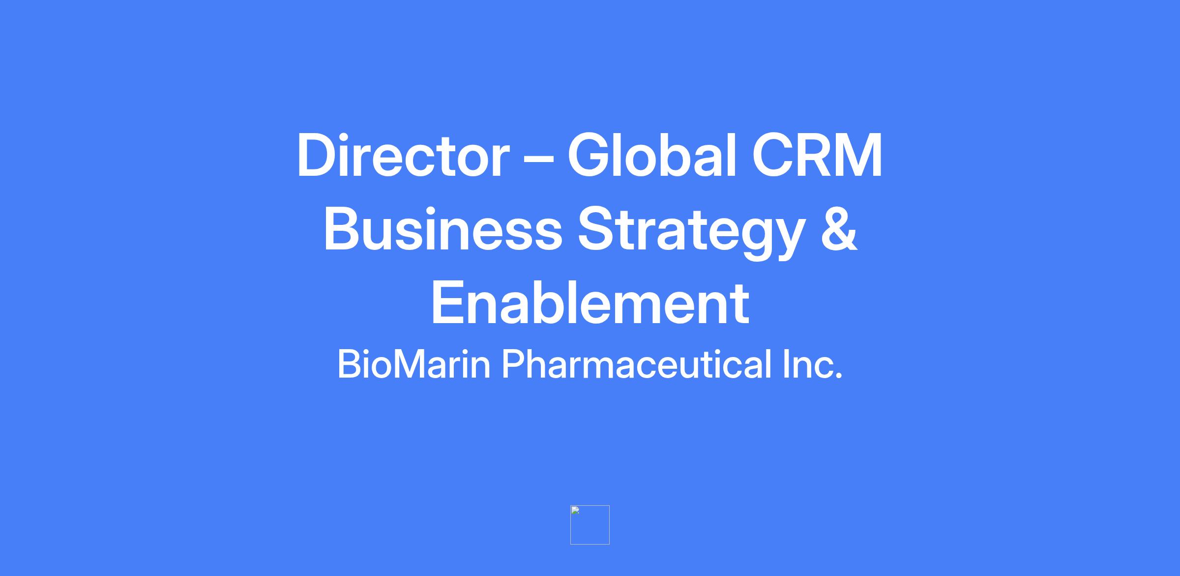BioMarin is seeking an experienced and strategic leader to serve as the Director, Global CRM Business Lead. This role shapes and executes the enterprise CRM strategy and roadmap, aligning engagement with customer experience goals, digital data strategy, and campaign needs. The role partners with Business Units, Commercial IT, Insights & Analytics, and Performance & Planning to lead CRM initiatives, processes, and new ways of working for global markets. The Director will drive ownership of CRM capabilities, lead adoption and governance, and ensure integration with omnichannel platforms to support therapeutic areas. The position will optimize CRM systems to enhance HCP and patient engagement through advanced segmentation, alerts or suggestions management, and closed-loop measurement, while aligning with global CRM standards.