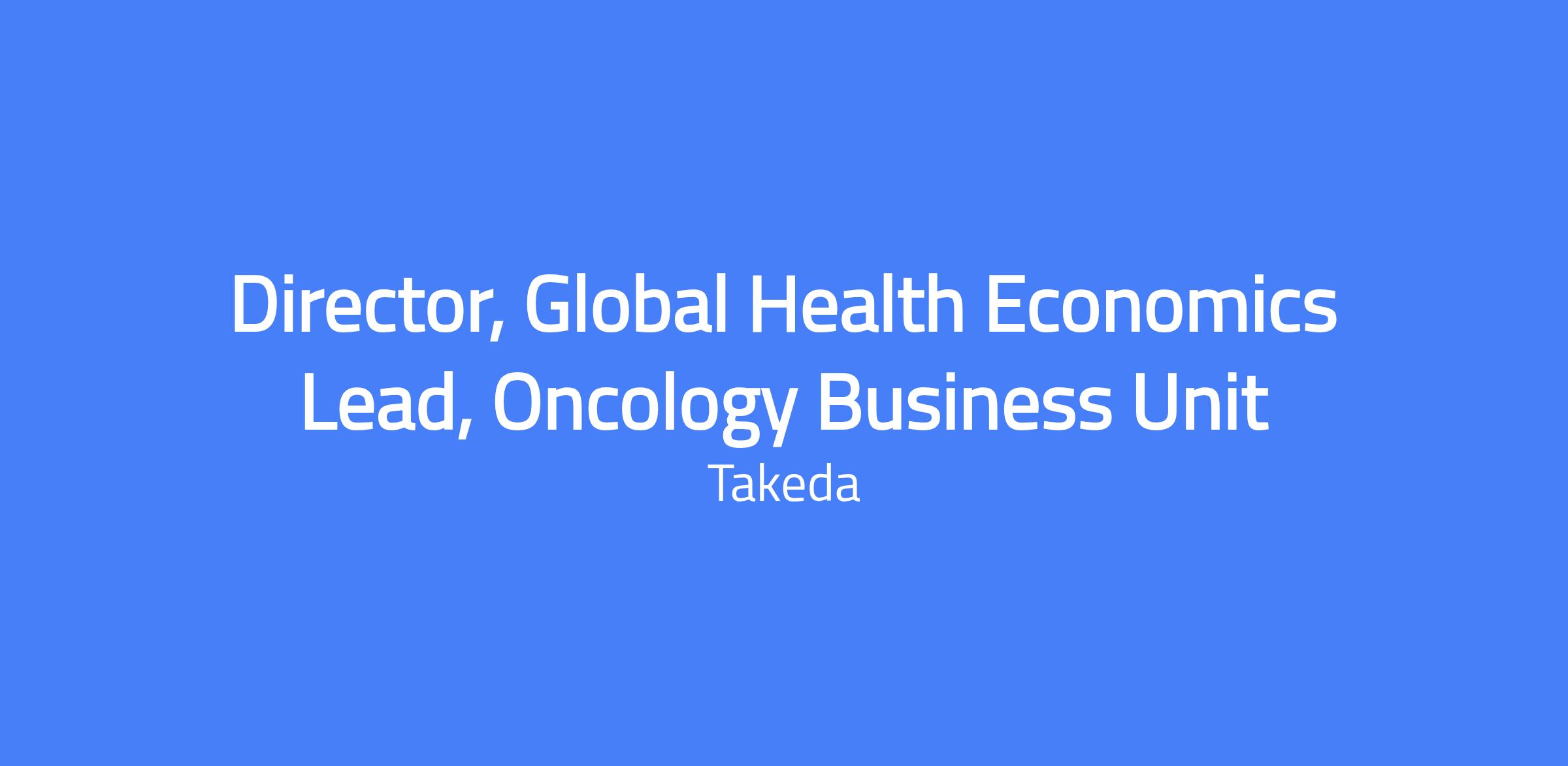 Director, Global Health Economics Lead, Oncology; a leadership role within Takeda Oncology’s Global Health Economics team responsible for shaping value demonstration, HTA strategy, and market access across global oncology assets. Reports to the Head of Global Health Economics and US HEOR and collaborates with R&D, Market Access, LOCs, and cross-functional partners. Location: Boston, MA.