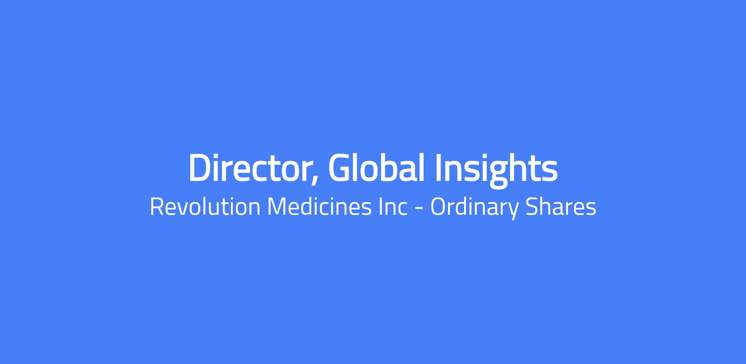 Reporting directly to the Senior Director, Global Insights, the Director, Global Insights role requires strategic thinking and expertise to provide critical contributions to disease area strategy, life-cycle planning and product and portfolio decisions. Â The individual in this role will be responsible for conducting market research in a variety of geographies to help support the development and potential commercialization of the RevMed portfolio and will be an influential voice in developing asset strategy. The ideal candidate will have experience working on pipeline molecules in Oncology across multiple geographies, strong problem-solving skills, a strategic mindset, and will exhibit curiosity, flexibility, and be comfortable with ambiguity.Â