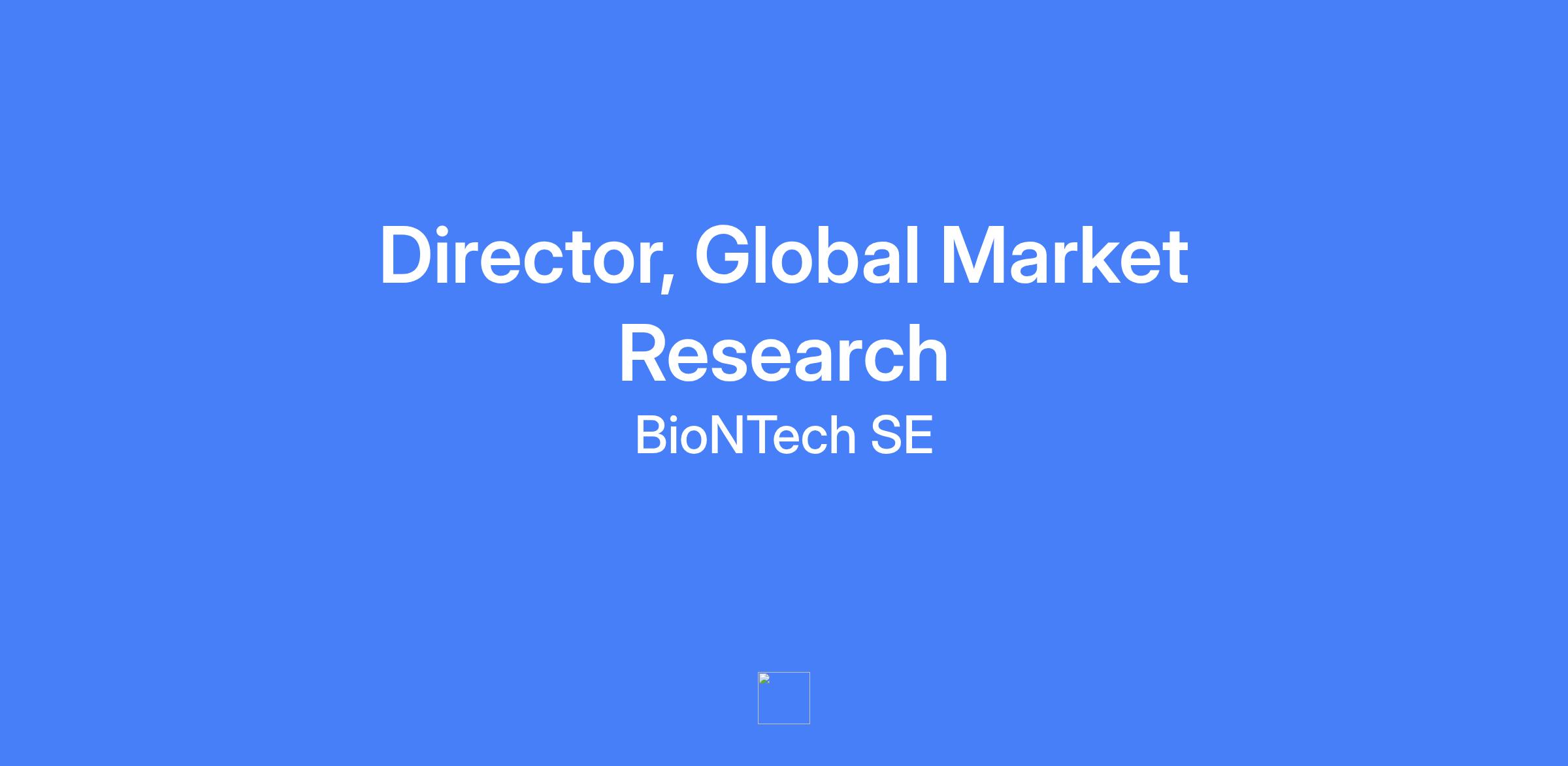 Director, Global Market Research. Location: New Jersey, US. This role will help establish BioNTechโs global commercial market research capabilities for its upcoming oncology launches and will report to senior leadership within a high-performing team.