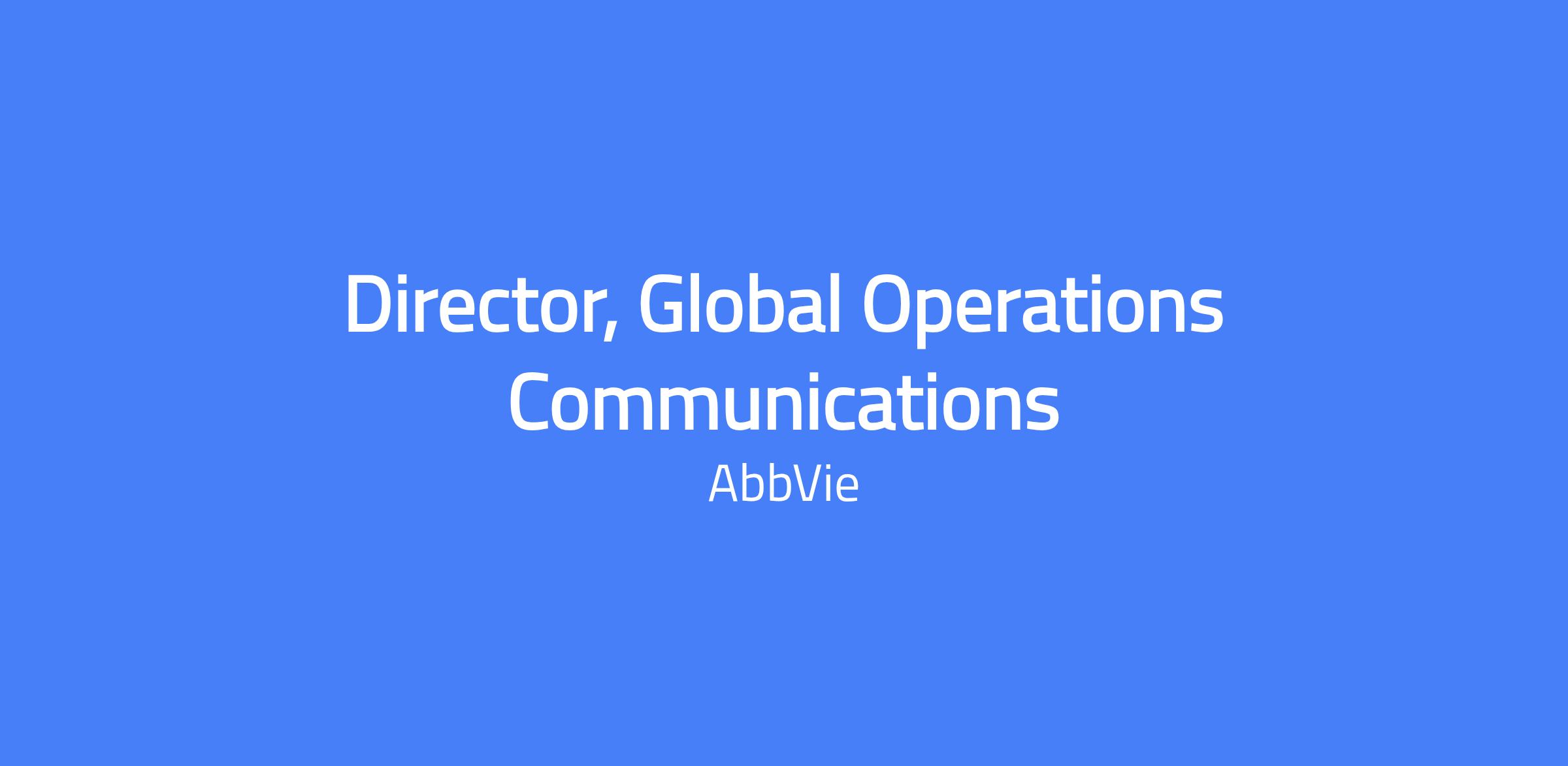 The Director, Global Operations Communications leads internal, external and executive communications for AbbVie’s Supply Chain and Quality groups and provides executive and strategic communications support to the EVP, Chief Operations Officer. The role develops, implements and executes strategic internal and executive communications across Supply Chain and Quality Assurance functions and supports the broader Global Operations Communications team. It also supports executive communications for the EVP/COO and develops communications strategies aligned to functional and enterprise priorities. The role reports to the Director of Global Operations Communications.