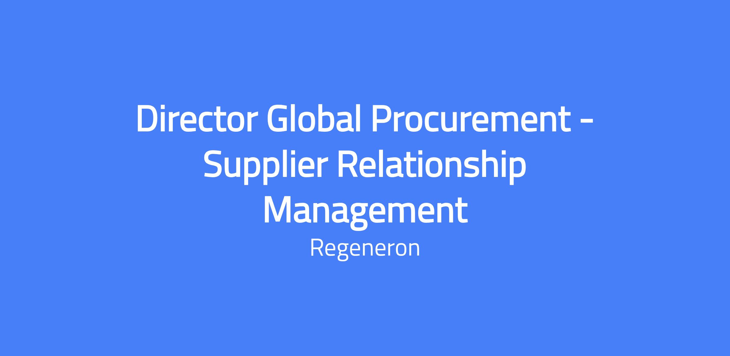 Director, Global Procurement β Supplier Relationship Management (SRM) will design, implement, and ensure the success of the supplier relationship management framework across Global Procurement. The role will manage key enterprise suppliers and partner with the CPO and other Regeneron stakeholders to deliver long-term value creation. It will support Category teams to optimize the SRM framework to drive innovation, manage risk, and enhance value delivery across the program. The role will enable communication to suppliers and within Global Procurement and Regeneron stakeholders related to SRM and other key Regeneron/Global Procurement priorities. This role requires onsite presence: four days per week at Regeneron's offices (locations may include Warren, NJ) with two days per week at the Global HQ in Tarrytown; this is not available as a fully remote/hybrid role.