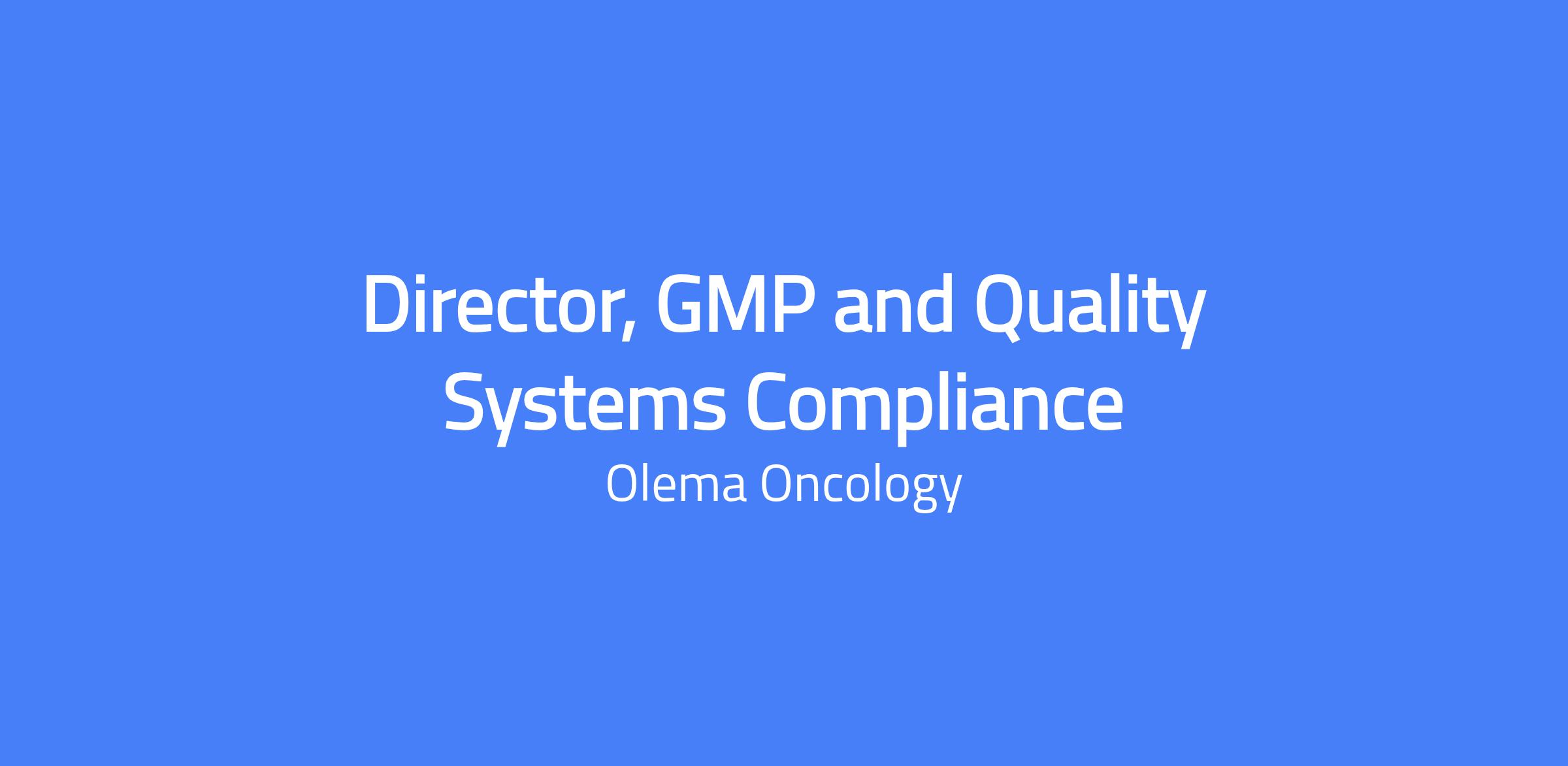Director, GMP and Quality Systems Compliance, reporting to the Senior Director, Quality Assurance, responsible for leading and overseeing compliance across Olemaβs GMP and Quality Systems functions. Establish procedural and system requirements for Supplier and Contract Service Provider (CSP) Quality Management, maintain inspection readiness across the clinical and future commercial network, develop and maintain Regulatory Intelligence, oversee internal audits and self-assessments, and coordinate annual Quality System reviews, including Quality Management Review (QMR) and Annual Product Reviews following commercial launch. This role is based in Cambridge, MA or San Francisco, CA with travel up to 25%, including international.