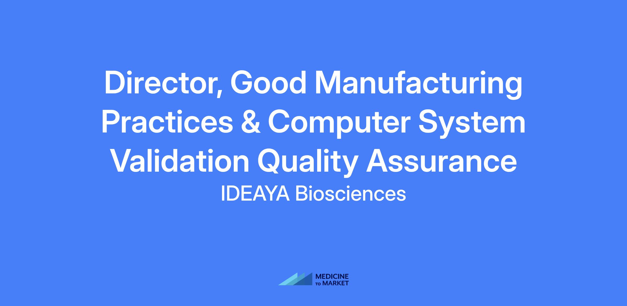 Director of Good Manufacturing Practices and Computer System Validation Quality Assurance to join our IDEAYA Quality team. The Director, GMP & CSV QA is a leadership role responsible for developing and maintaining GMP and CSV Quality Systems, supporting internal and external compliance activities, and overseeing deviation, CAPA, change control, and batch release processes. Acts as QA liaison to project teams to ensure regulatory and company standard compliance for manufacturing, testing, release, and distribution of clinical and commercial products. Reports to the Vice President, Quality.