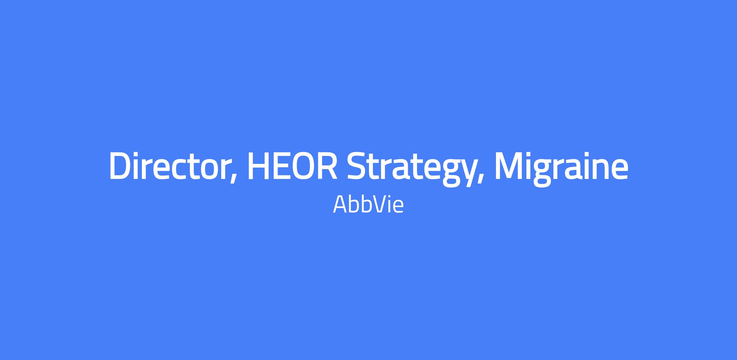 The Director, Health Economics & Outcomes Research (HEOR) Strategy for Migraine leads the development and execution of projects for on-market and/or pipeline development assets. They serve as the brand/asset HEOR leader on cross-functional asset/brand teams and in pipeline commercialization teams. They are accountable for HEOR strategies and execution for at least one asset and/or at least one indication for US or international, and may have 1β2 full-time direct reports.
