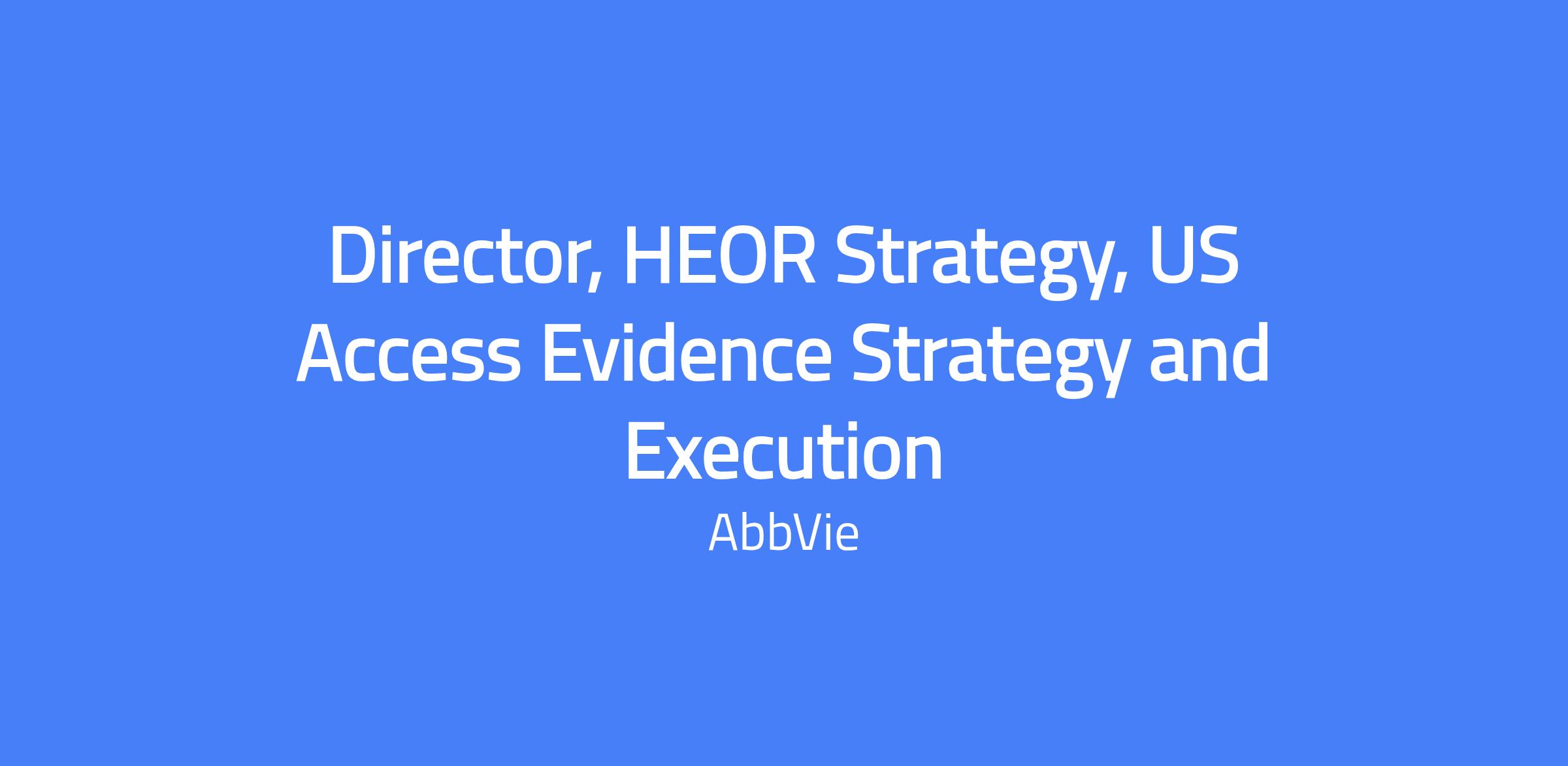 Director, HEOR Strategy, US Access Evidence Strategy and Execution leads the development and execution of the Inflation Reduction Act value and evidence strategy and the capabilities to support AbbVieโs drug price negotiation program with CMS for the Neuroscience portfolio. The role reports to the HEOR Strategy TA Lead. Location preferences include Mettawa, IL, or Irvine, CA.