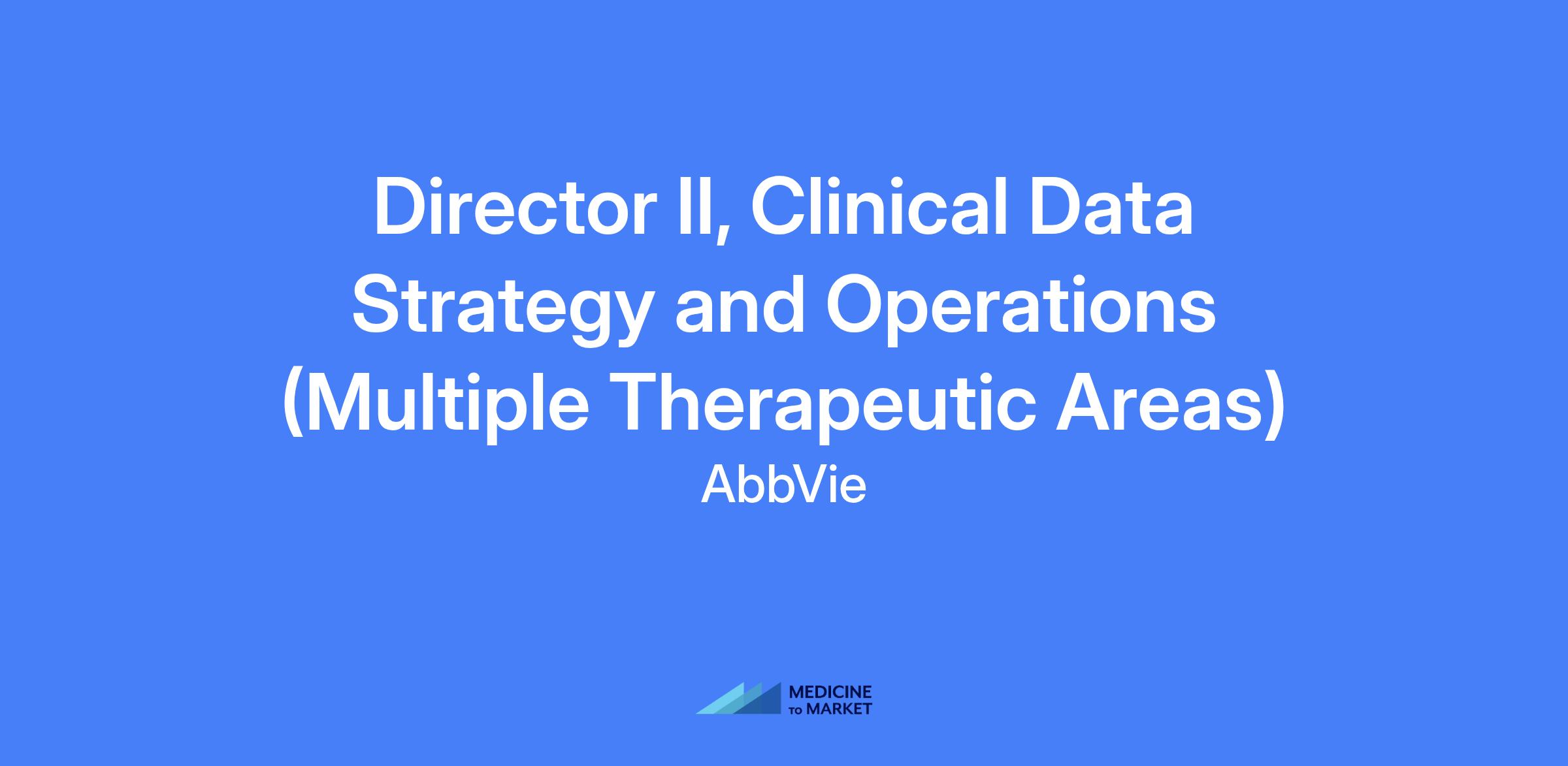Director II, Clinical Data Strategy and Operations (Multiple Therapeutic Areas) leads a global CDSO organization responsible for supporting assigned therapeutic areas within AbbVie’s clinical trial portfolio. Plays a key role in designing, developing, and maintaining the operating model, including talent acquisition, performance management, process development, quality control, continuous improvement, and change management. Collaborates across CDSO and R&D to ensure integrated, high-quality clinical data delivery.
