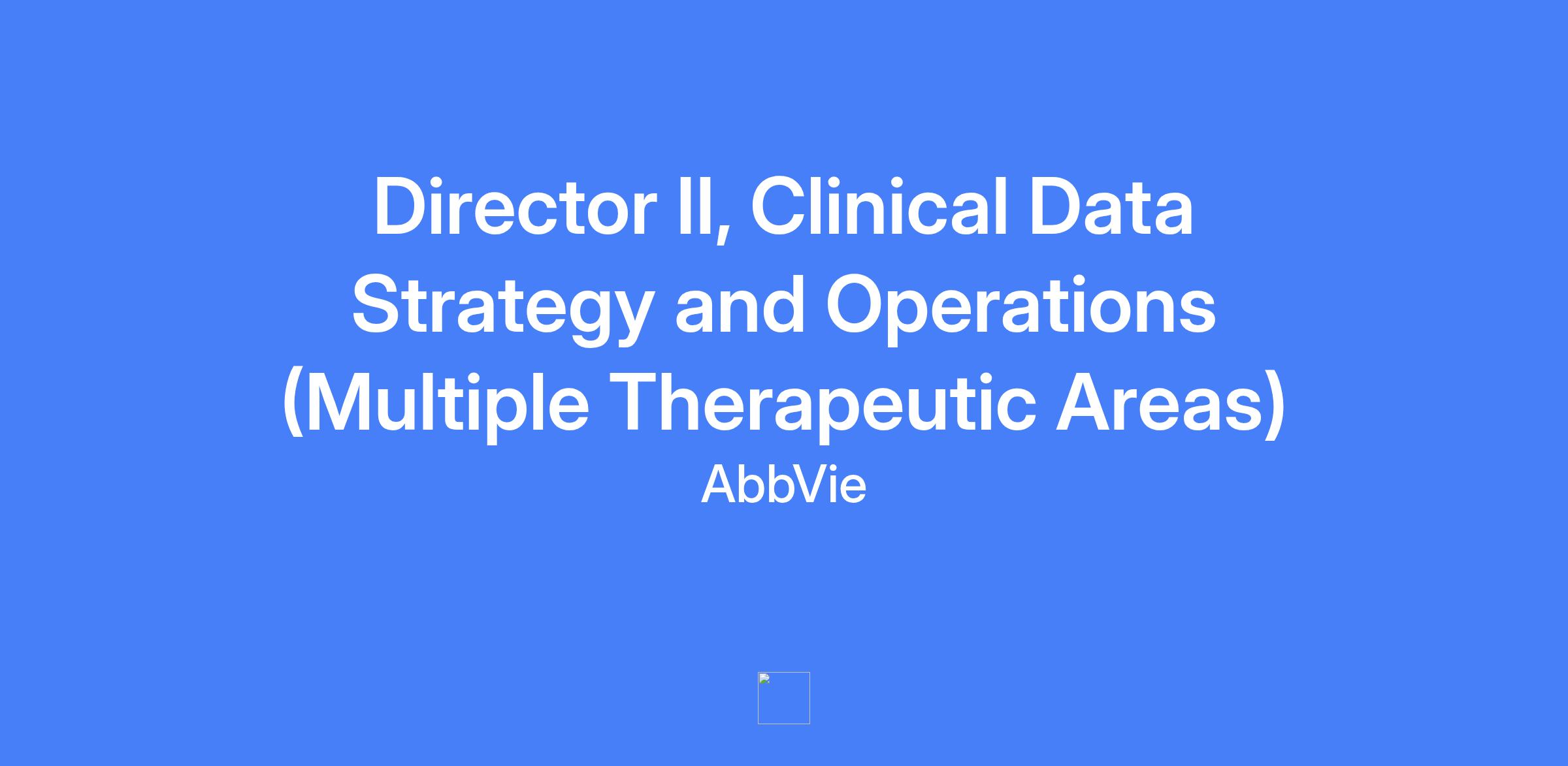 Director II, Clinical Data Strategy and Operations (Multiple Therapeutic Areas) leads a global CDSO organization responsible for supporting assigned therapeutic areas within AbbVie’s clinical trial portfolio. Plays a key role in designing, developing, and maintaining the operating model, including talent acquisition, performance management, process development, quality control, continuous improvement, and change management. Collaborates across CDSO and R&D to ensure integrated, high-quality clinical data delivery.