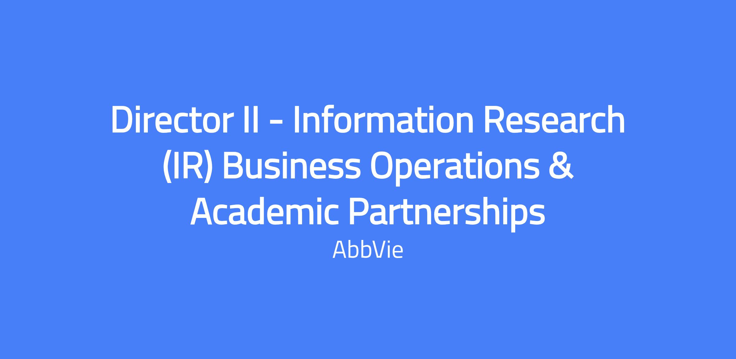 - Set strategic direction for IR operational enablement, aligned to BTS, R&D, and AbbVie enterprise priorities.