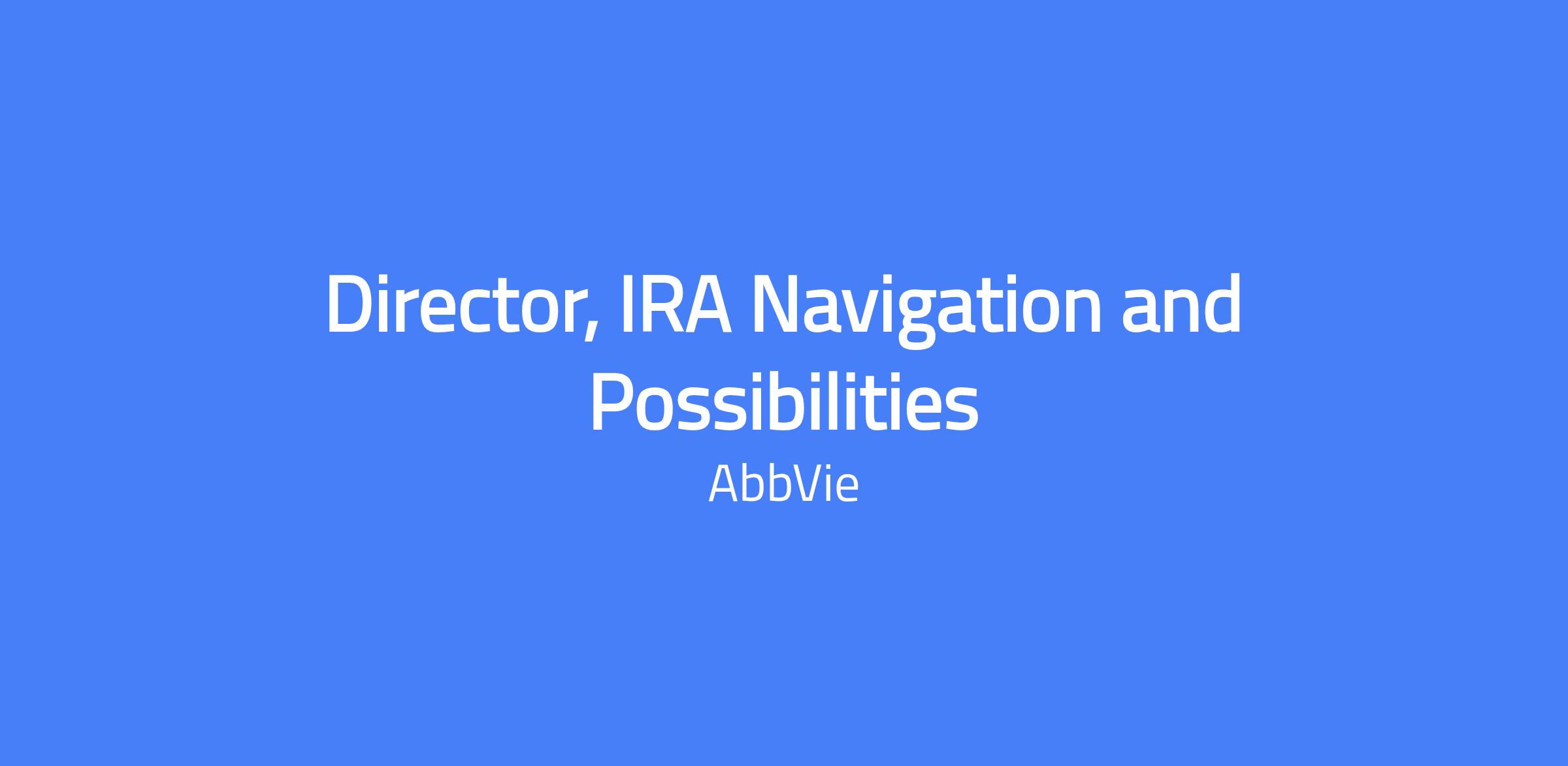 The Director of IRA Navigation and Possibilities is a business-critical role at AbbVie created in response to the significant impact of the Inflation Reduction Act (IRA) on the pharmaceutical industry. This director will act as a subject matter expert, providing strategic direction and cross-functional leadership to help AbbVie proactively manage IRA-related risks and opportunities for both current commercial brands and future pipeline products.