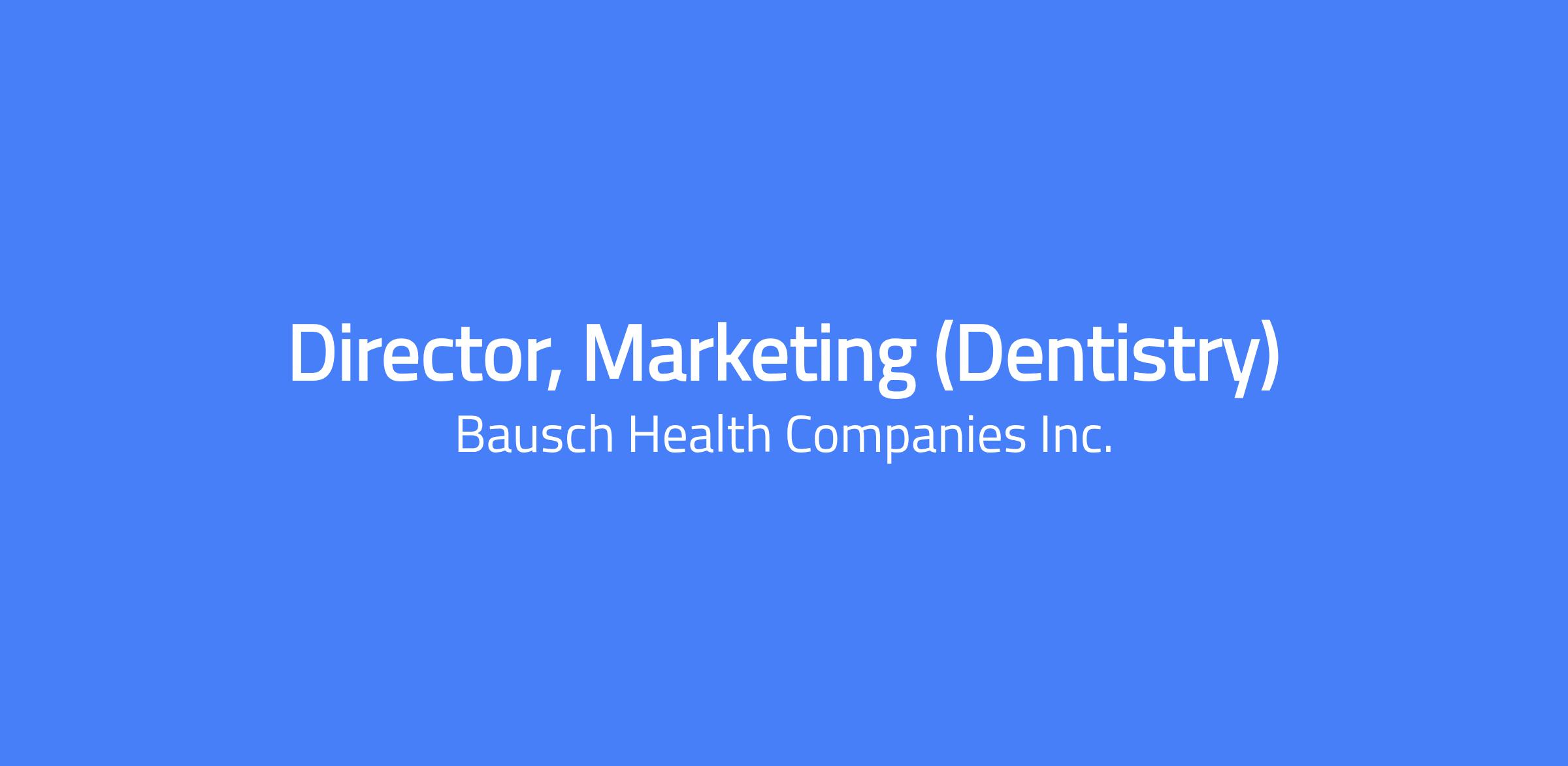 Director, Dentistry Marketing will report to VP, GM, Dentistry. This leadership role is responsible for determining the strategy and leading the promotional execution of two dentistry assets (pharmaceutical and medical device) and will have dedicated direct reports. The role requires expertise in buy-and-bill environments and direct-to-provider and direct-to-patient promotion, with experience in volume-based pricing programs and strong field collaboration. The successful candidate will develop a vision and plan to offer better solutions for dentistry professionals and patients, and will lead a cross-functional team to deliver on key strategic imperatives. The position has broad functional responsibility with high visibility to executive decision makers.