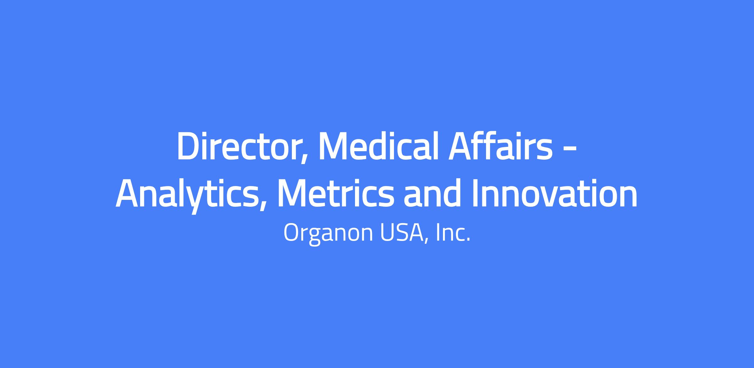 Job Description The Position The Medical Affairs Analytics, Metrics & Innovation Director is accountable for assisting and driving execution of the vision of Medical Affairs and Outcomes Research (MAOR). The Director leads several core initiatives, including, but not limited to: 1) Data innovation and strategy 2) Annual Planning Process and 3) creation and monitoring of reports and dashboards for all key functions within Medical Affairs. **This position can be 100% remote in the US** Responsibilities Leadership Actively contributes to special projects across all regions and organization functions that will improve and evolve the ways in which MAOR executes on its mission and vision. Independently identifies and oversees identification and execution on novel projects (e.g., implementing new processes, creating useful tools) to improve and evolve the ways in which MAOR executes on its mission and vision). Develops analytics tools and is able to use visualization technology to provide business intelligence to leadership to drive effective execution. Understands the mission and vision of MAOR as a science-driven and patient-committed organization. Oversees communication of emerging project status, including risks and issues, to relevant internal and external stakeholders. Analytics Drives creation and tracking of key performance indicators and key metrics, including managing the creation of reports for key communications, including impact reports, annual planning process/reporting, the Organon Medical Affairs website, and SharePoint. Contributes to the development of strategies based on the KPI findings to address gaps, and identify opportunities based on data analytics. Drives and refines key metrics to ensure they are actionable and relevant and ensures processes are in place to execute on the defined metrics collection approach. Develops and monitors reports, and dashboards for all key functions within Medical Affairs. Digital Innovation Evangelizes the adoption of new tools and processes for MAOR headquarters and field medical personnel through all relevant digital channels and in partnership with MAOR leadership. Serves as MAOR point of contact for cross-collaborative digital initiatives across the company. Responsible for developing and managing the site where team members can get information on the various systems, processes and tools that are vital to MAOR’s business operations. Leads the digital team and develops and maintains a digital inventory of key resources and materials available for team members. Stays current with key initiatives across MAOR and supports fellow leadership colleagues and their teams in achieving deliverables against organizational priorities. Oversees complex initiatives with global scope and impact aligned with key MAOR Global Strategy priorities. Exhibits a high degree of collaboration with MAOR colleagues to ensure alignment across the broader organization. Presents ongoing strategic project updates at MAOR leadership team meetings as well as at other relevant forums (e.g., Summits, Townhalls, Operations Reviews). Exhibits executive presence, deep subject matter expertise and strong business acumen. Required Education, Experience and Skills Bachelor’s or equivalent degree required. Relevant business experience, ideal if within biopharmaceuticals/Medical Affairs. Experience planning and executing innovative projects. Experience working within regulations and compliance requirements. Ability to manage multiple projects simultaneously. Ability to exercise influence without direct authority over a continuum of stakeholders. Ability to work independently while escalating risks and issues, as appropriate. Ability to innovate with practical solutions for complex issues. Ability to organize, prioritize, and work effectively in a constantly changing, ambiguous environment and to motivate a team to do the same. Strong communication and collaboration skills. Analytical skills with both qualitative and quantitative data. Advanced working knowledge of Microsoft Office Suite (Word, PowerPoint, Excel, SharePoint), Power BI and/or other visualization technology. Strong decision-making and problem-solving skills. Excellent networking and cross-functional management skills. #LI-Remote Who We Are: Organon delivers ingenious health solutions that enable people to live their best lives. We are a $6.5 billion global healthcare company focused on making a world of difference for women, their families and the communities they care for. We have an important portfolio and are growing it by investing in the unmet needs of Women’s Health, expanding access to leading biosimilars and touching lives with a diverse and trusted portfolio of health solutions. Our Vision is clear: A better and healthier every day for every woman. US and PR Residents Only For more information about personal rights under Equal Employment Opportunity, visit: EEOC Poster EEOC GINA Supplement OFCCP EEO Supplement OFCCP Pay Transparency Rule Organon is an Equal Opportunity Employer. We are committed to fostering a culture of inclusion, innovation, and belonging for all employees and job applicants. We ensure all employment practices are conducted without regard to race, color, religion, sex, sexual orientation, age, gender identity or gender expression, national origin, disability, veteran status, or any other characteristic protected by state or federal law. Search Firm Representatives Please Read Carefully Organon LLC., does not accept unsolicited assistance from search firms for employment opportunities. All CVs / resumes submitted by search firms to any employee at our company without a valid written search agreement in place for this position will be deemed the sole property of our company. No fee will be paid in the event a candidate is hired by our company as a result of an agency referral where no pre-existing agreement is in place. Where agency agreements are in place, introductions are position s